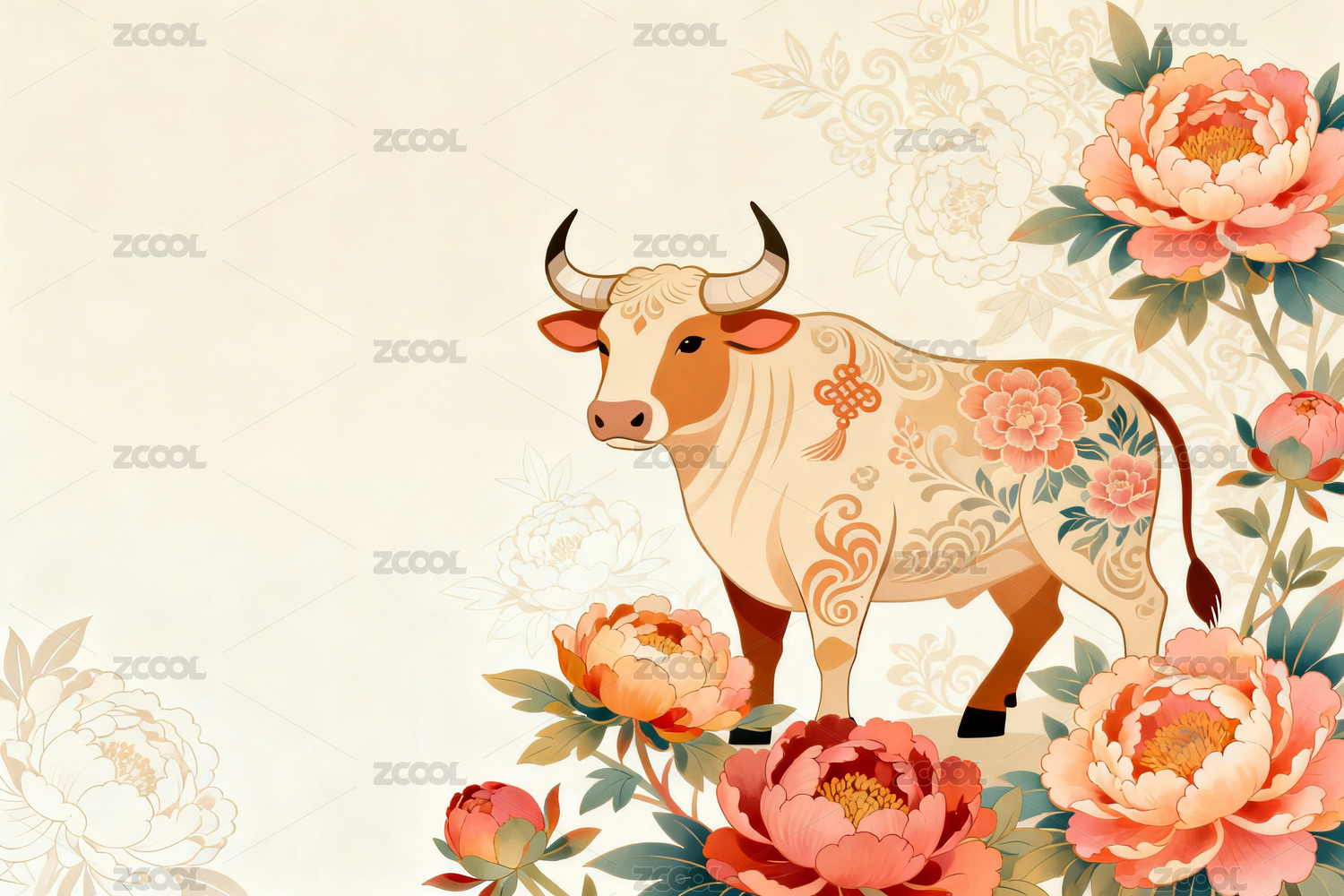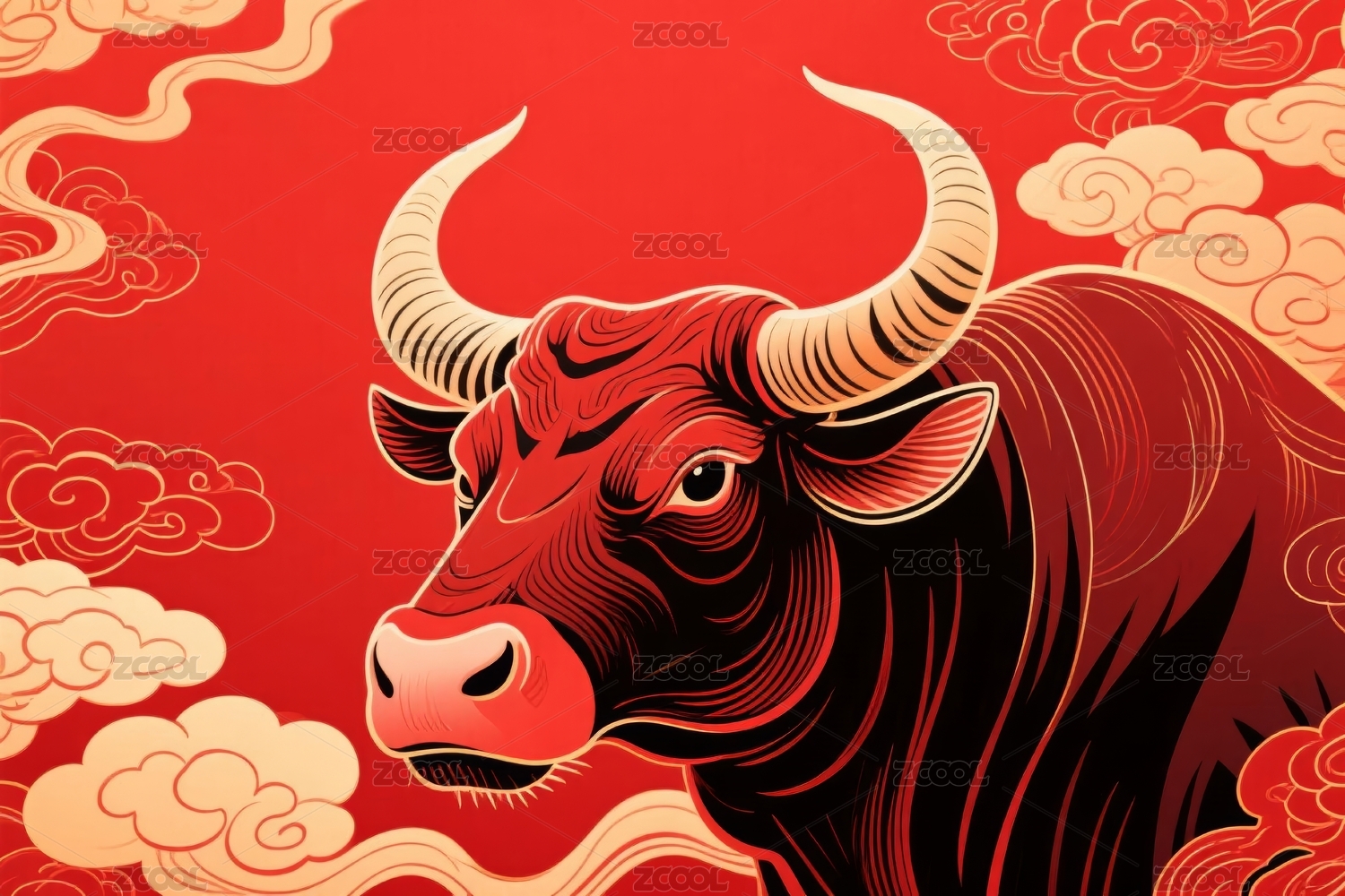 白天白底水边草地喝水的牛特写插画绘画手绘