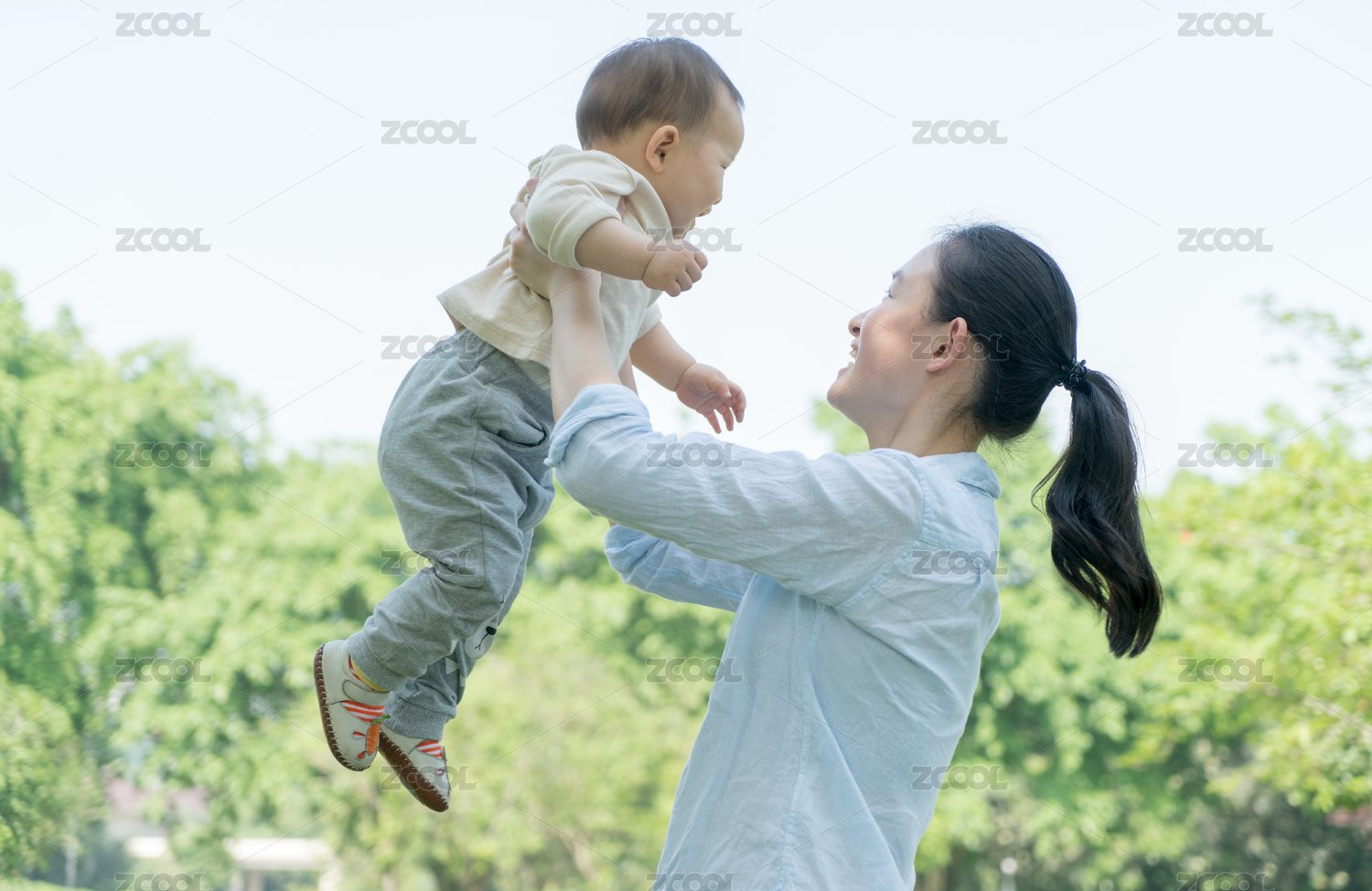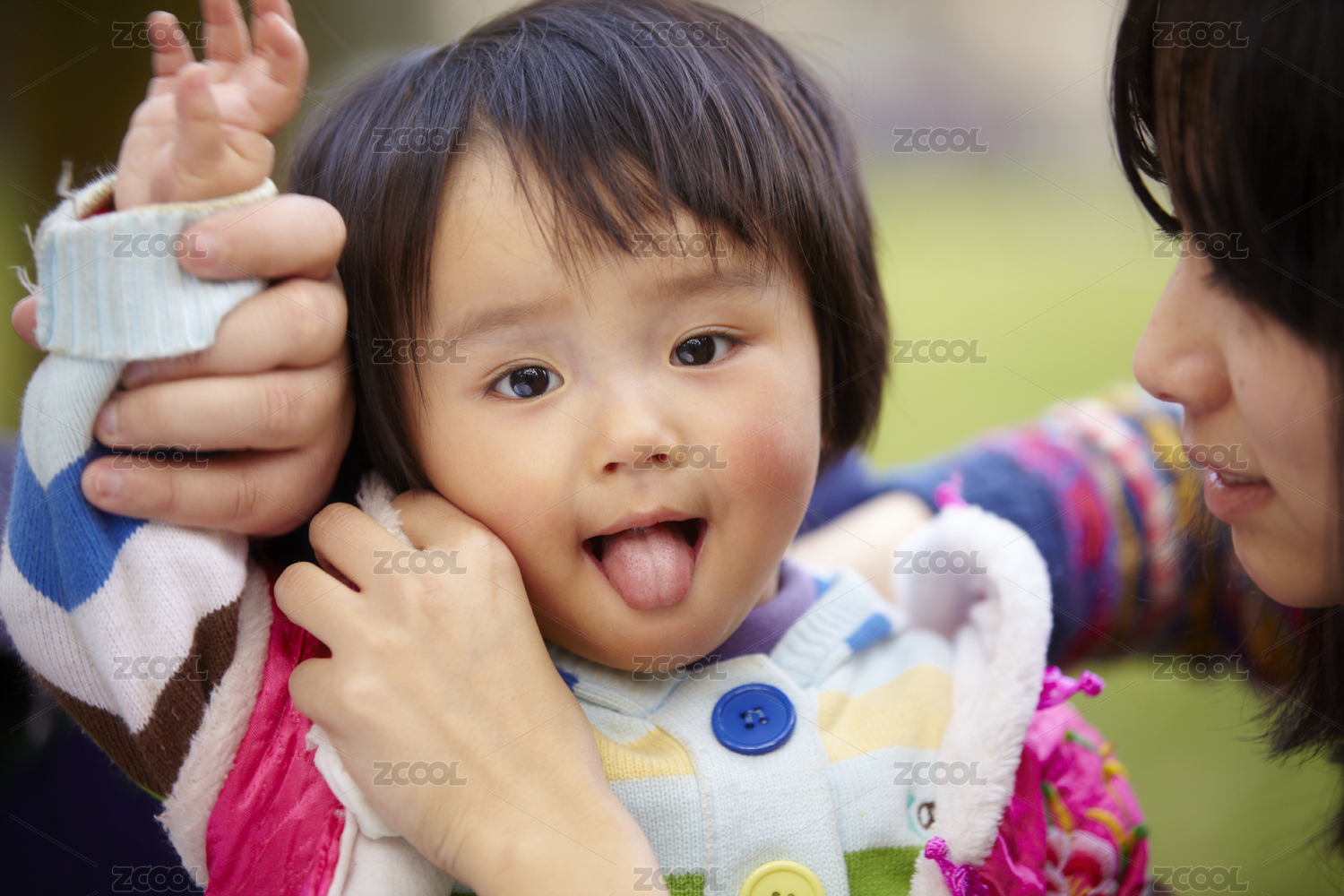 妈妈和宝宝在草地上玩耍