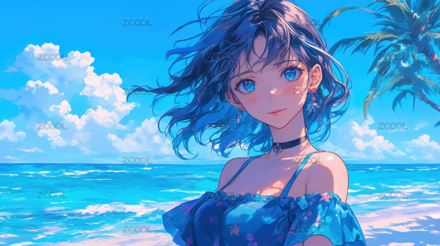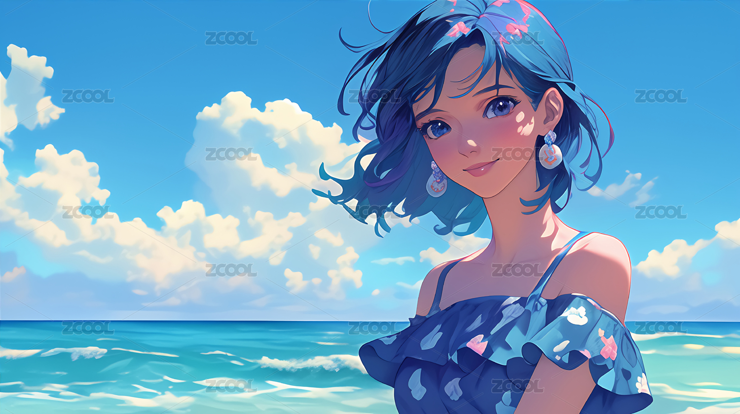 女孩,人像,少女,二次元,云朵,蓝天,清新,温柔