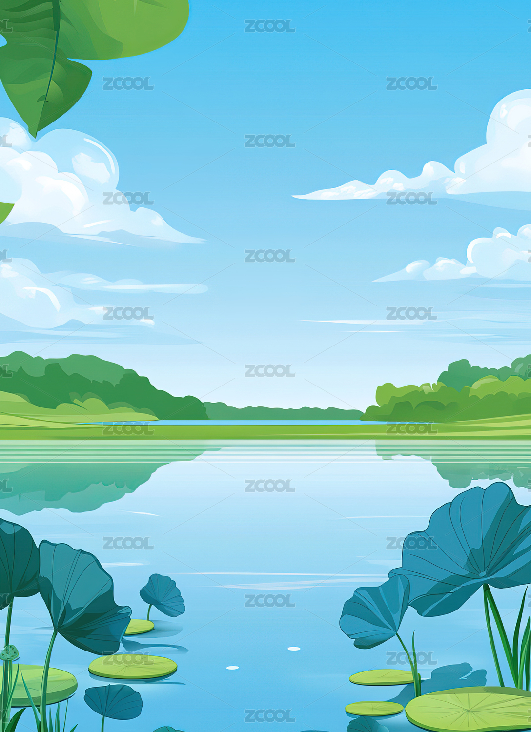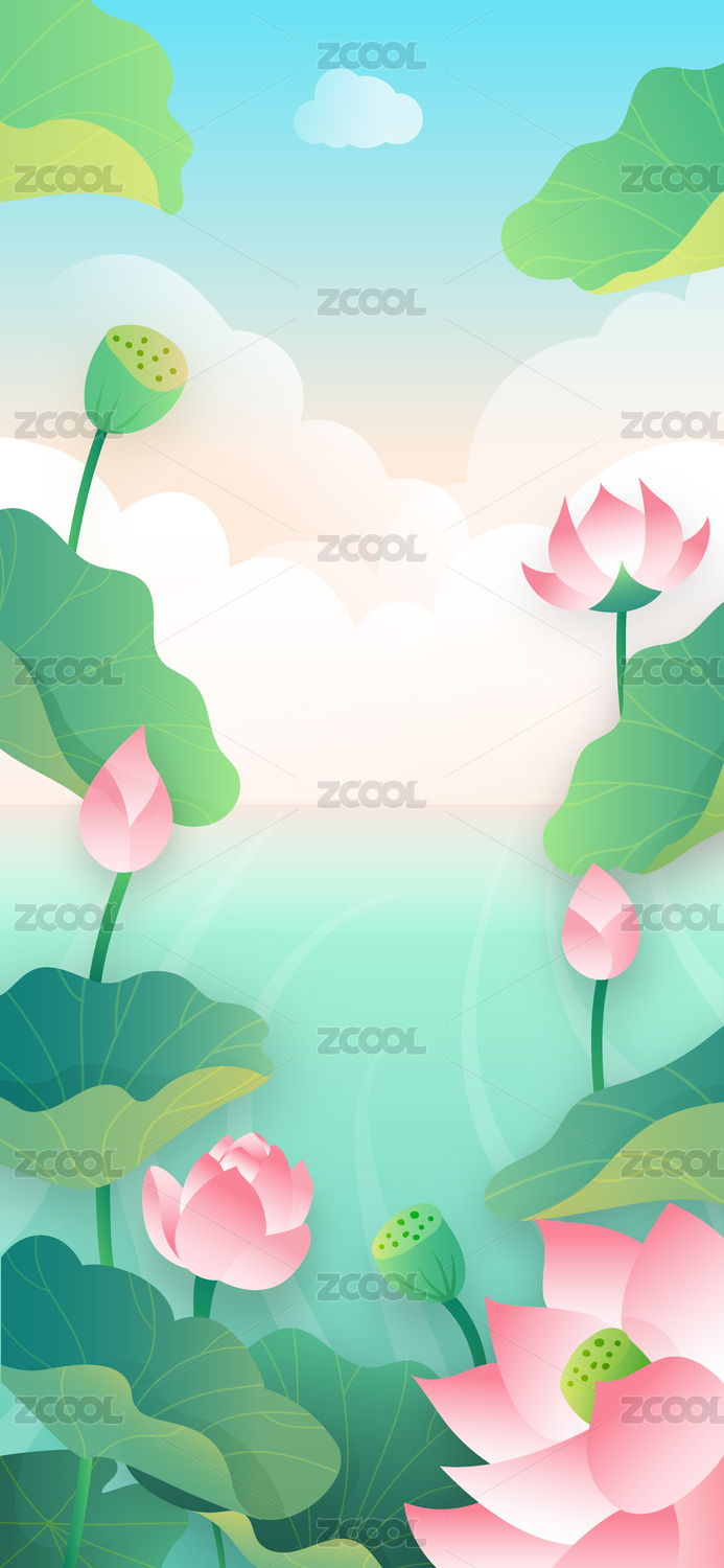 荷叶,荷花,天空,白云,插画,背景,抽象,艺术,蓝色,青色