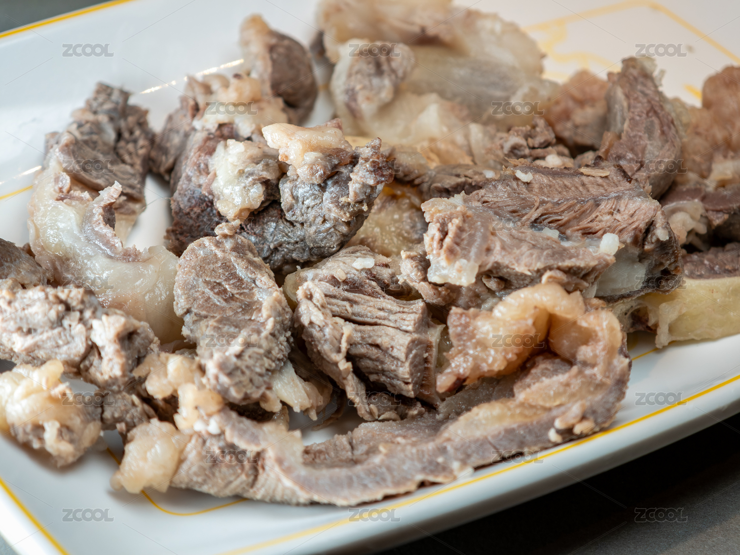 餐盘里的带筋熟牛腩特写