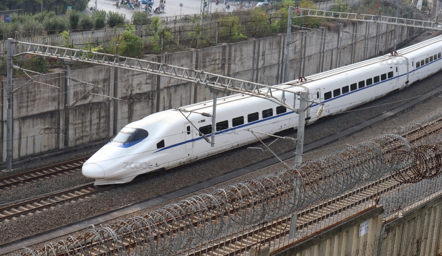 正在高速行驶的高铁列车俯视图