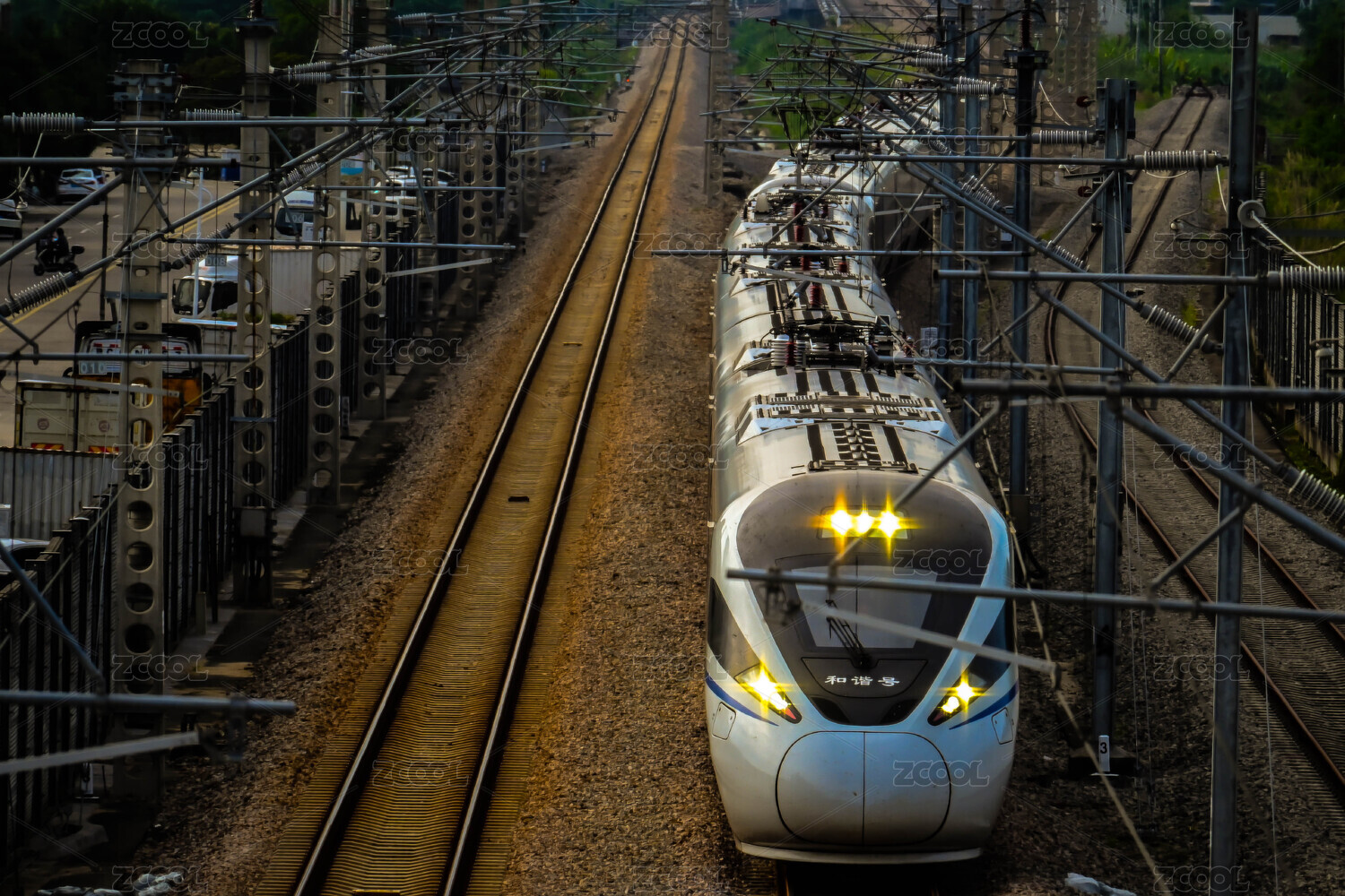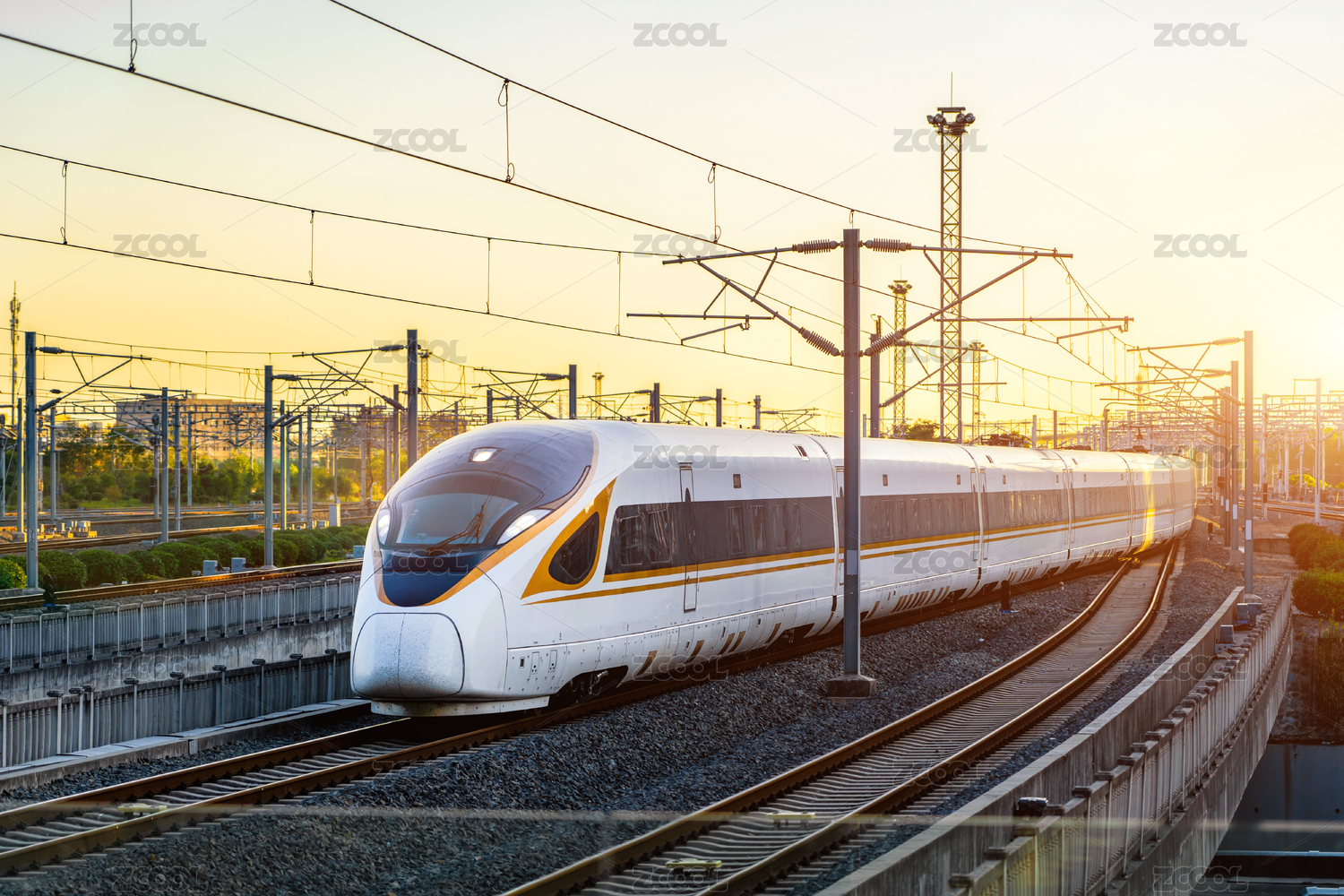 在夕阳下行驶的复兴号高铁列车