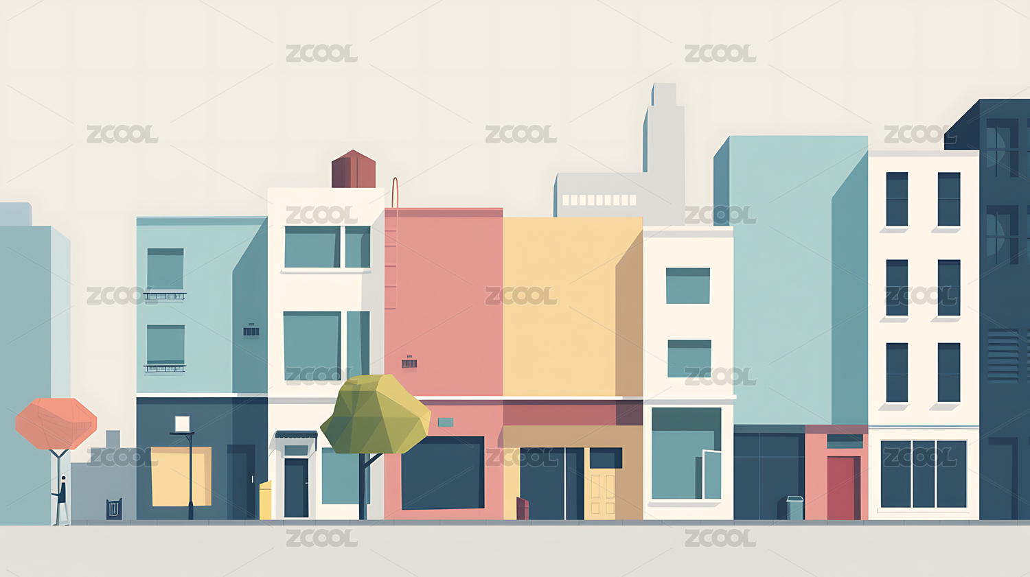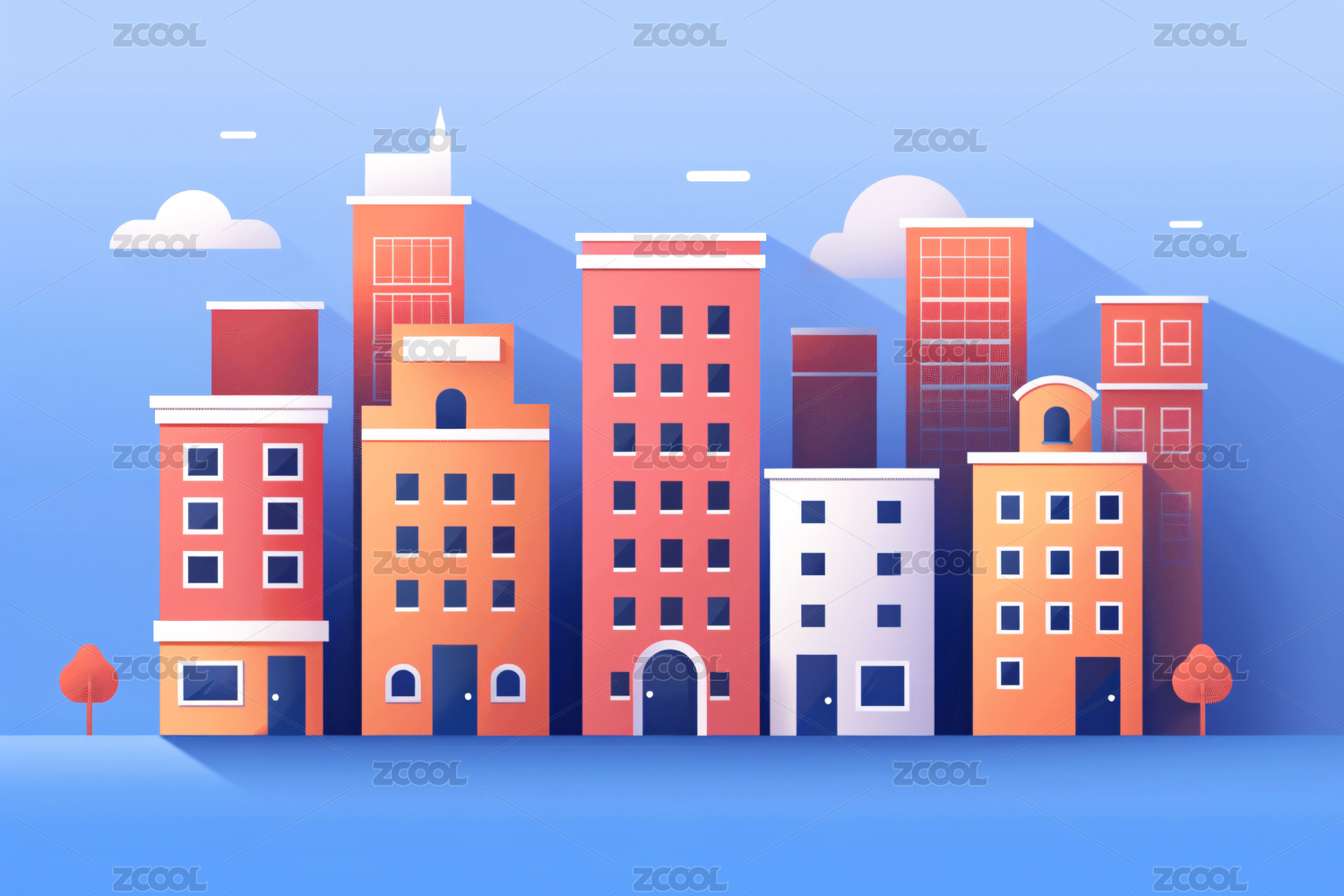 色彩鲜明的城市建筑插画