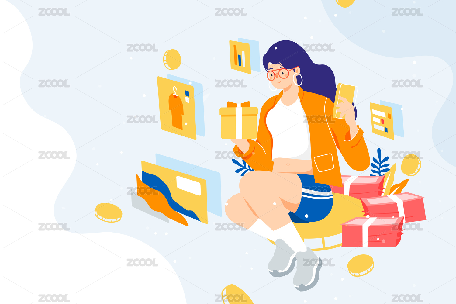 电商购物宝箱插画