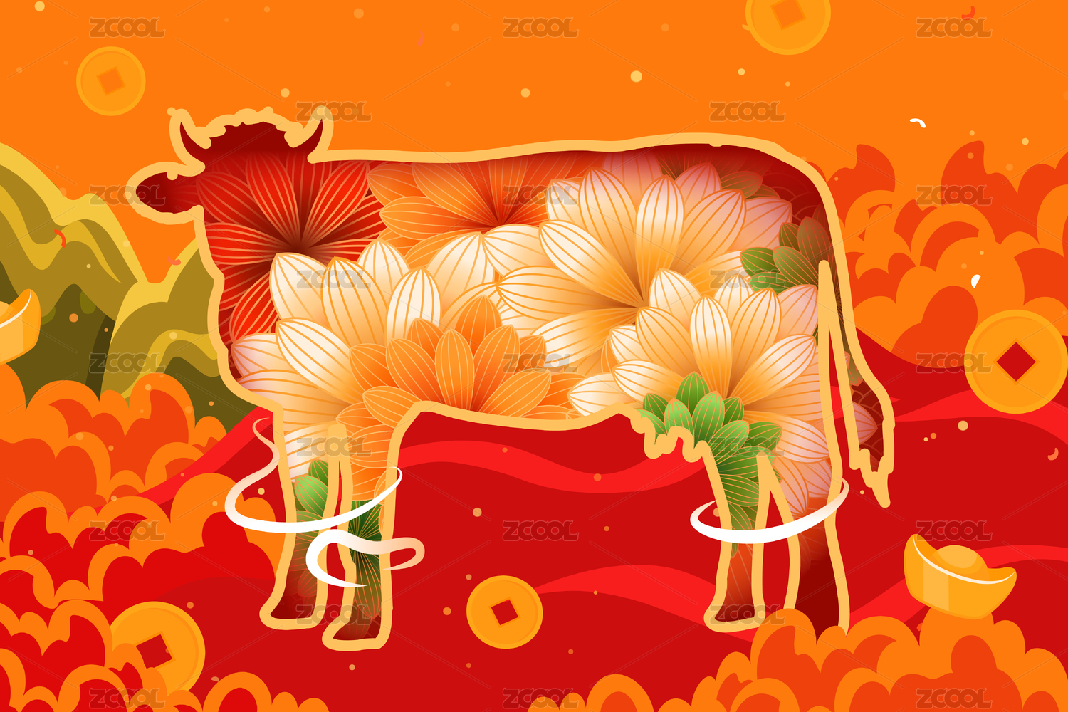 牛年活动矢量插画