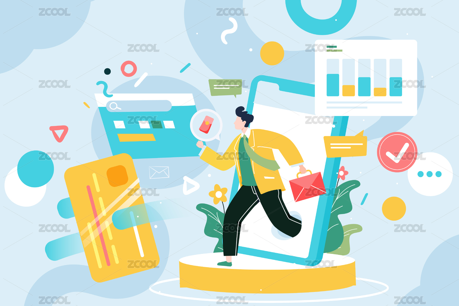 网购商务矢量插画