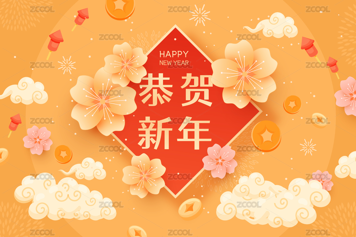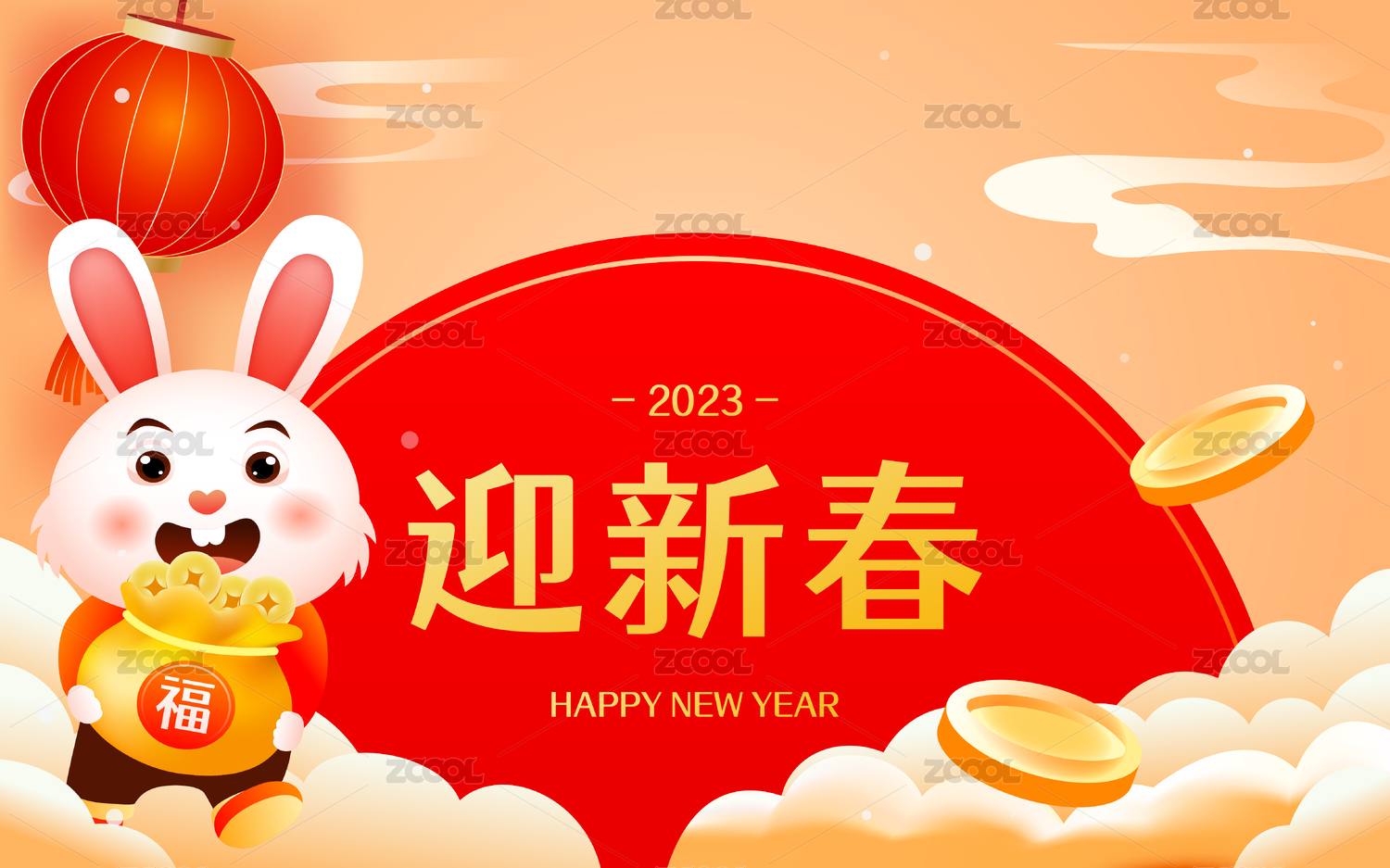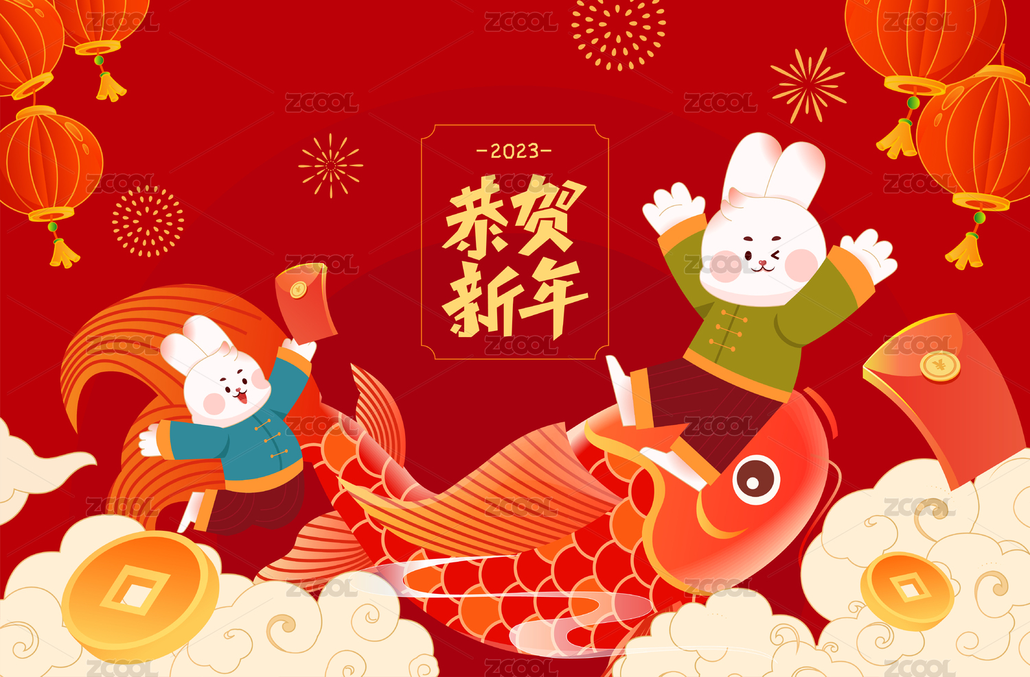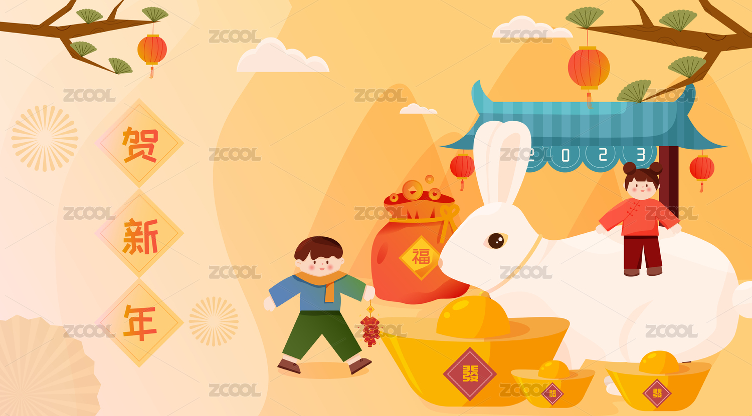 兔年春节财源广进招财进宝横幅矢量插画海报