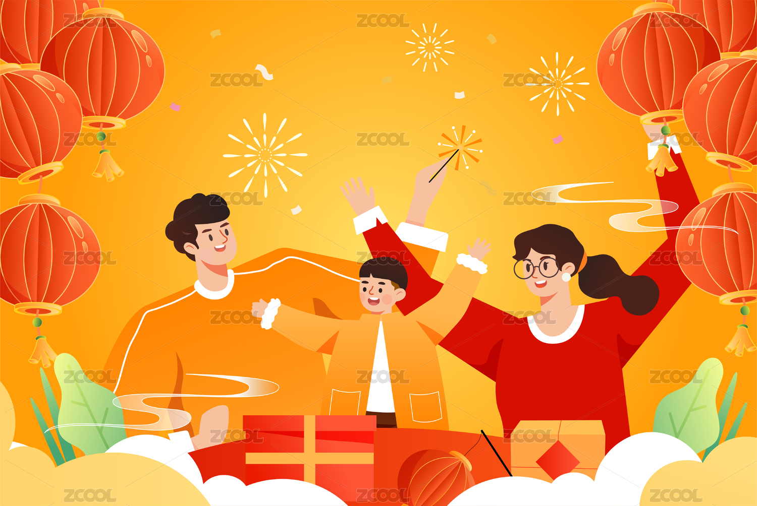 过年一家人团圆插画