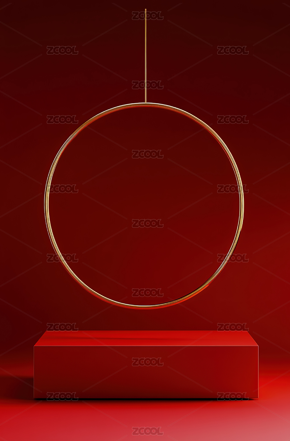 红色背景下金色圆形展台