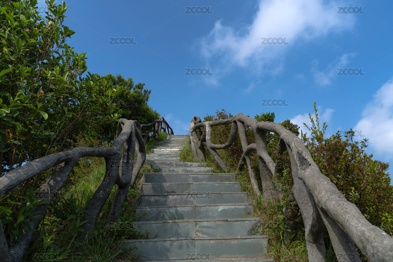 中国深圳梧桐山,蓝天下的登山石阶长廊