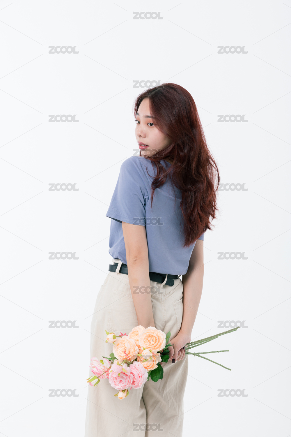手拿花束的年轻女生