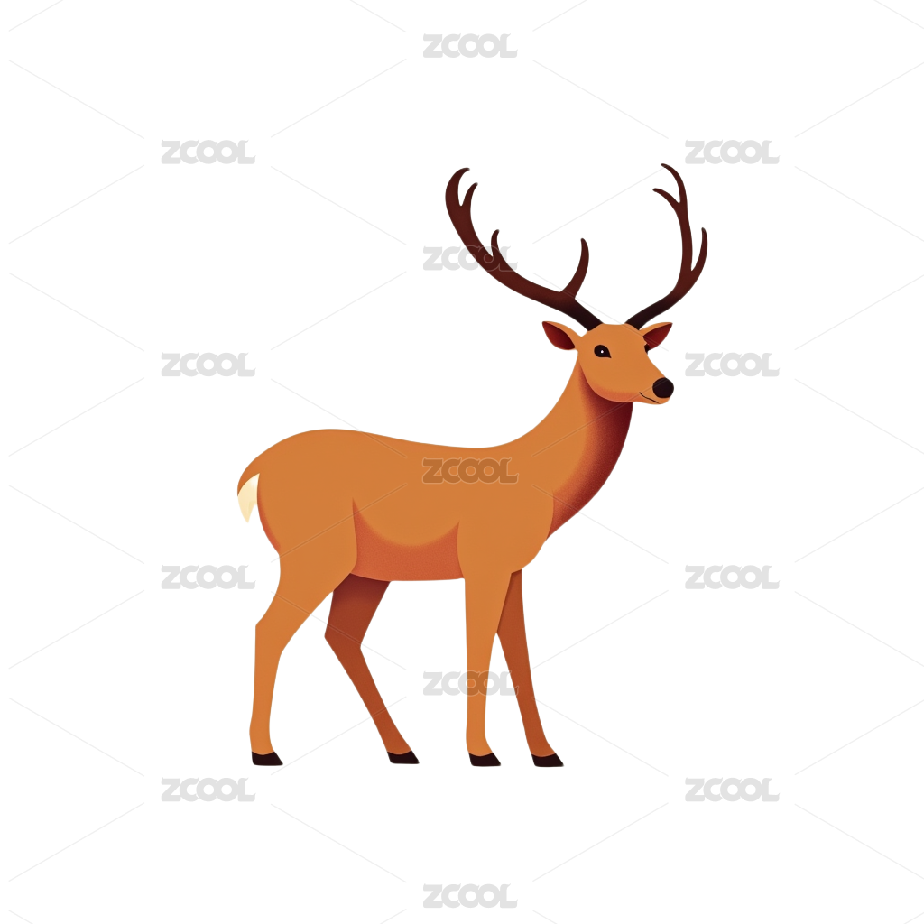 可爱的卡通鹿有着硕大的鹿角