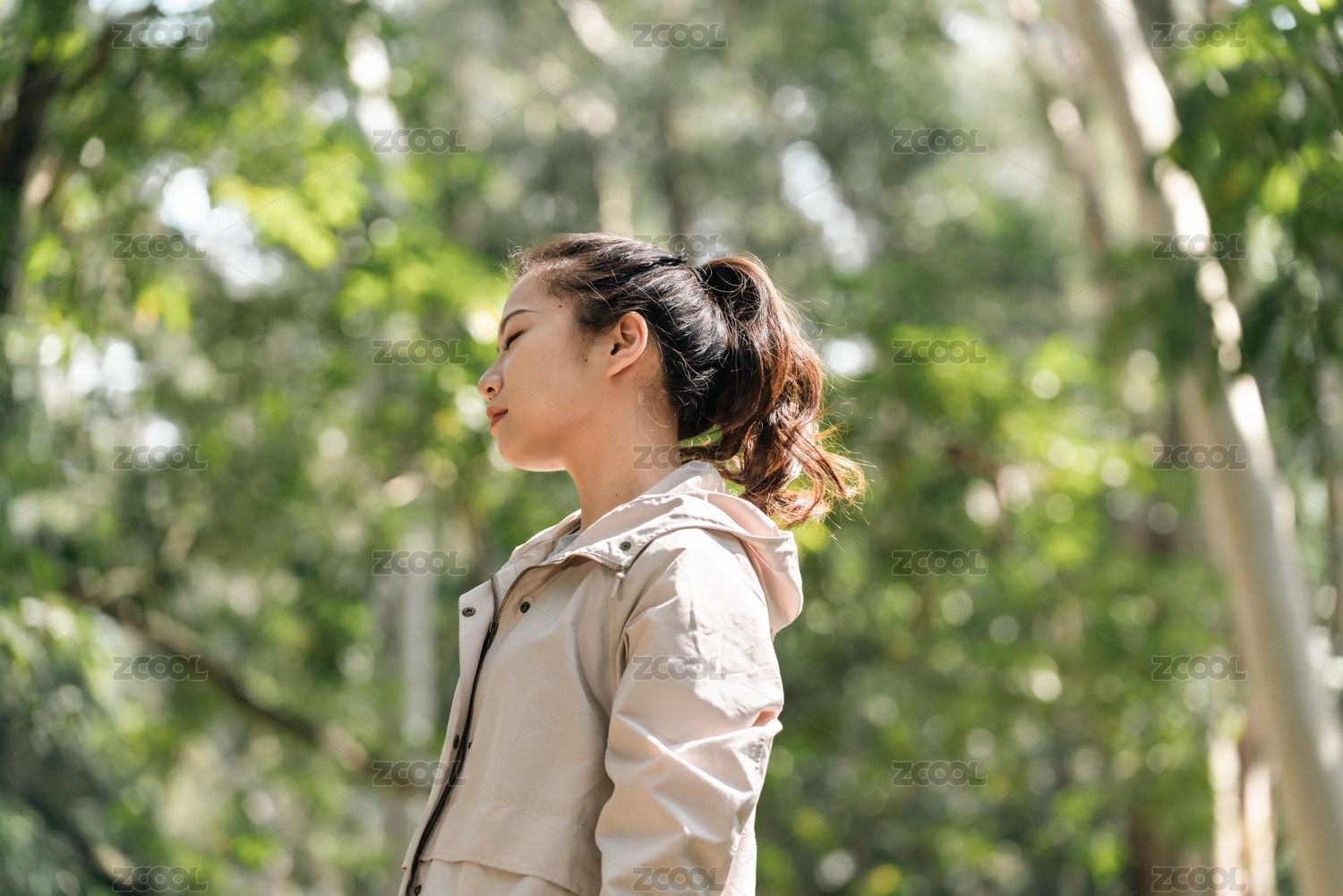 女人,绿色公园,宁静,自然,放松,户外,休闲,春季,新鲜空气,沉思