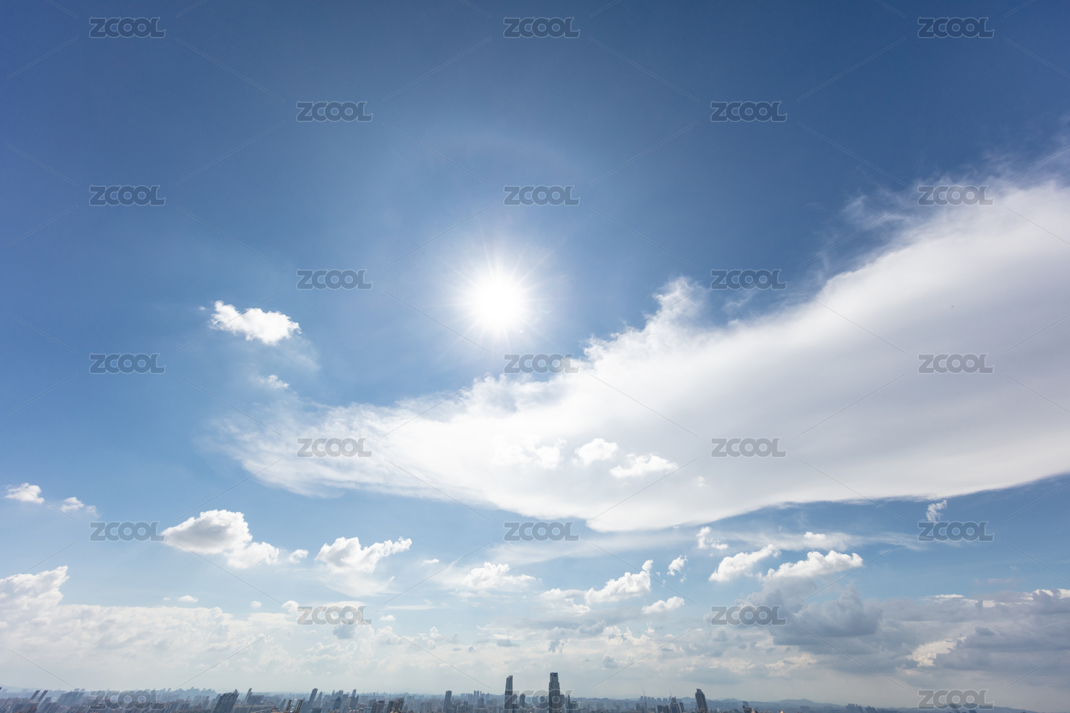 户外天空云景和城市天际线
