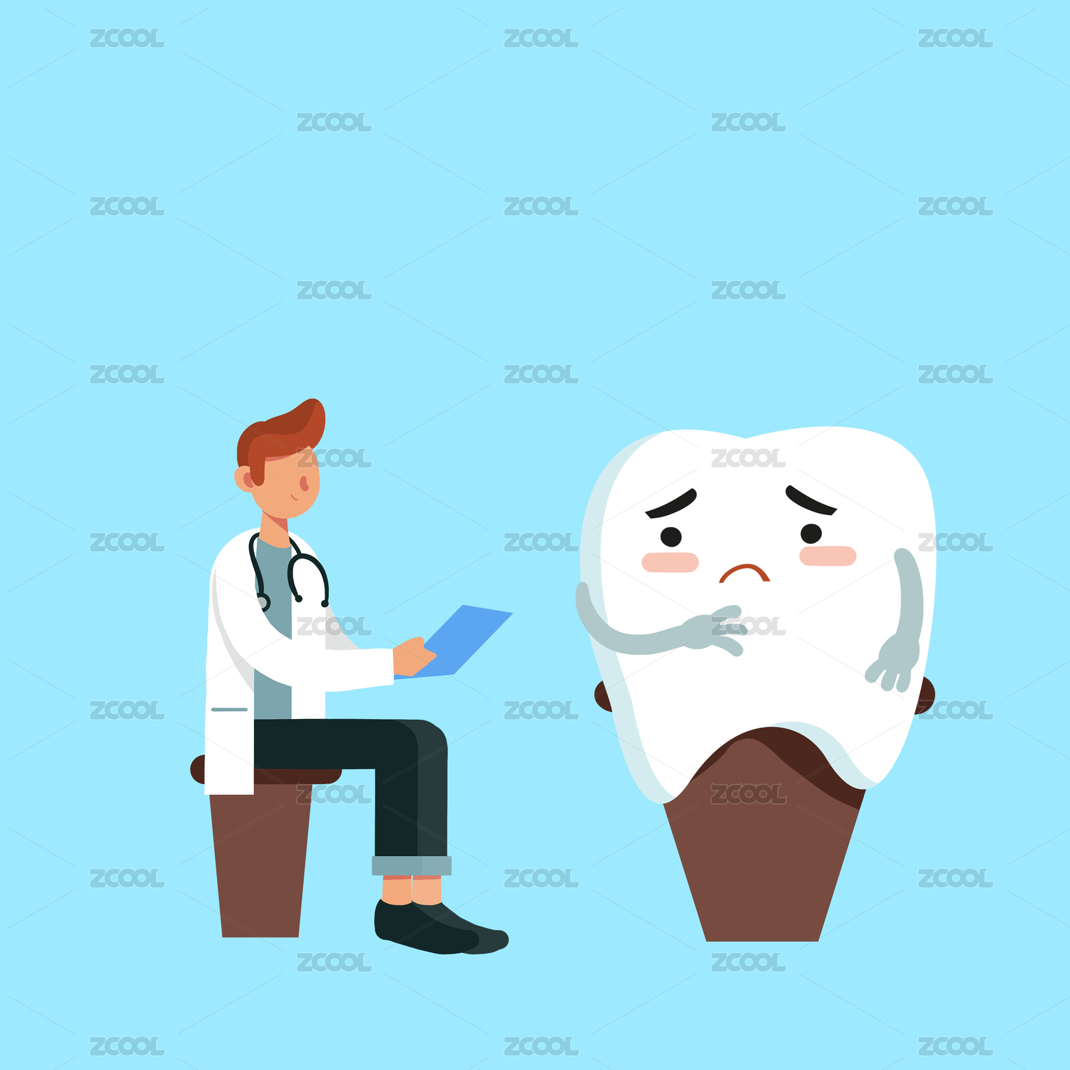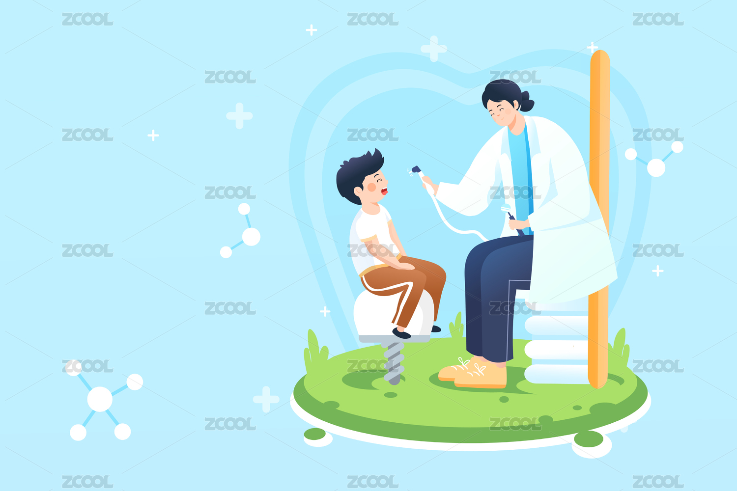 手绘爱牙日牙齿保健牙医检查口腔矢量插画