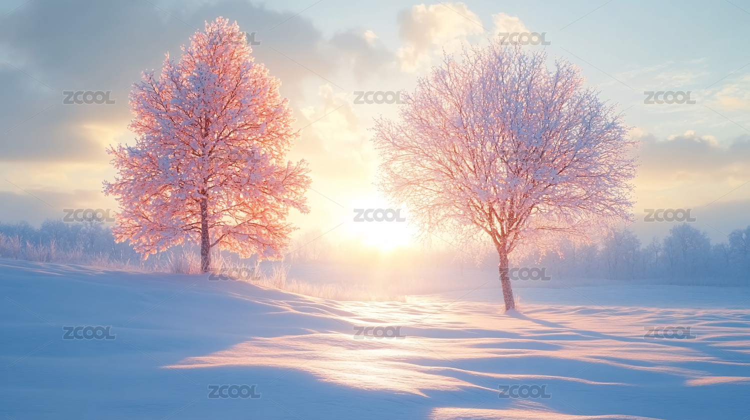 无人,户外,树,日落,天空,自然美,风景,冰天雪地,晨雾,大雪