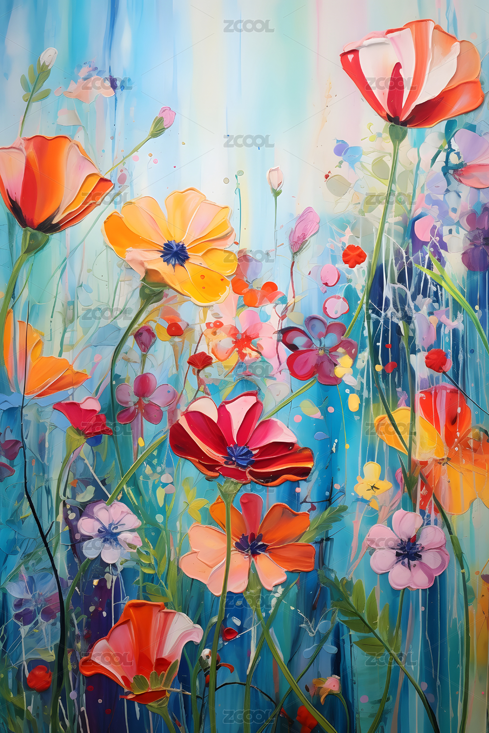 油画,色彩,纹理,绘画,花草,艺术,抽象画,花丛,田野,背景