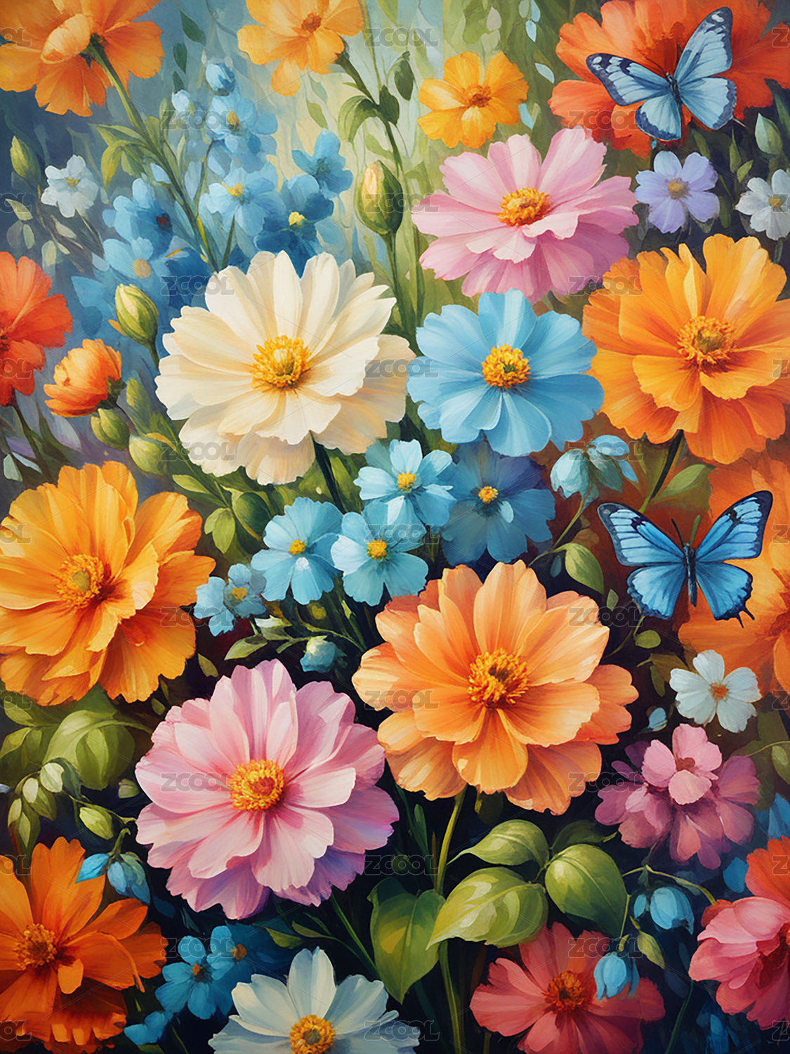 油画风花卉插画