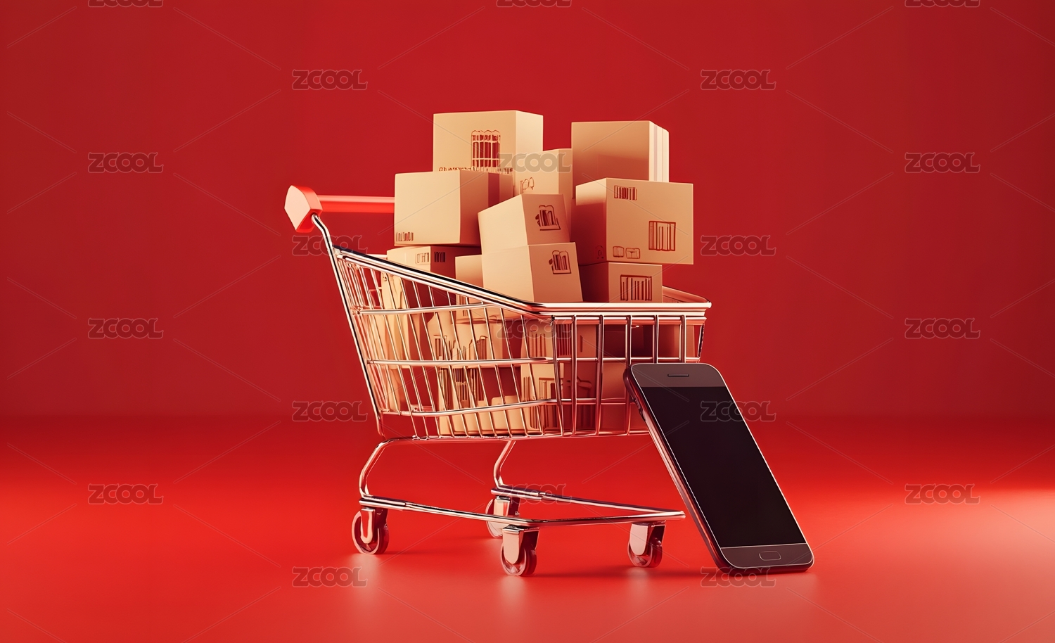 装满快递箱的购物车