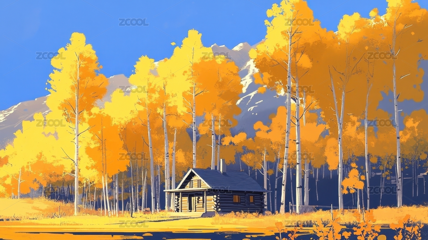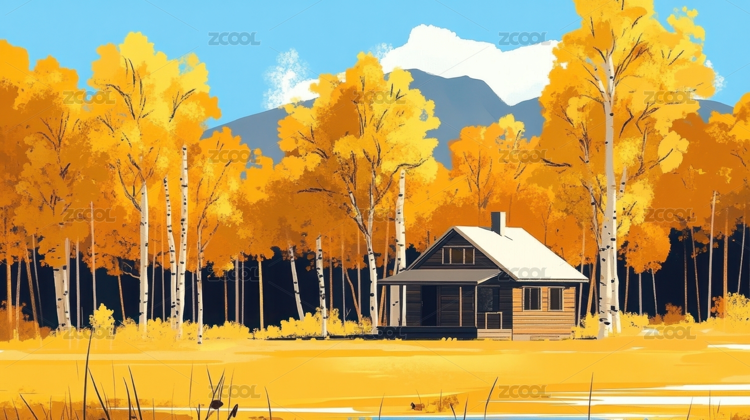 秋天,树木,乡村,自然风光,金色,蓝天,明亮,户外,宁静,温暖