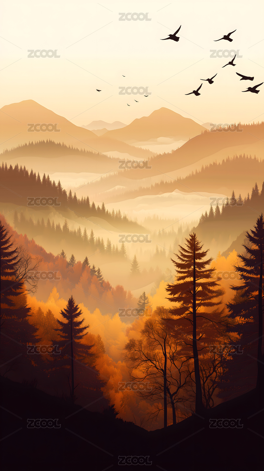 立秋节气户外旅行自然风景处暑卡通唯美插画