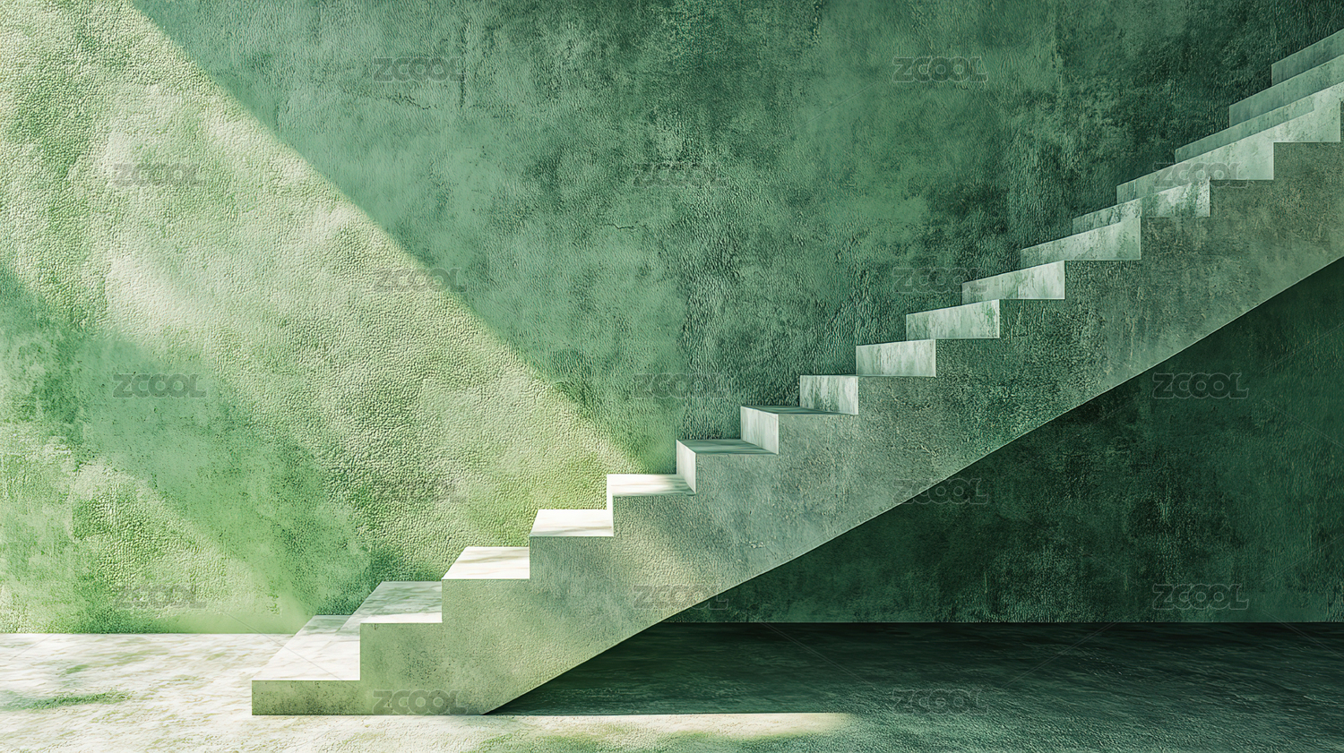 绿色现代几何建筑空间平台3D渲染抽象背景