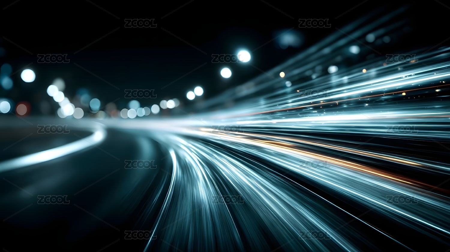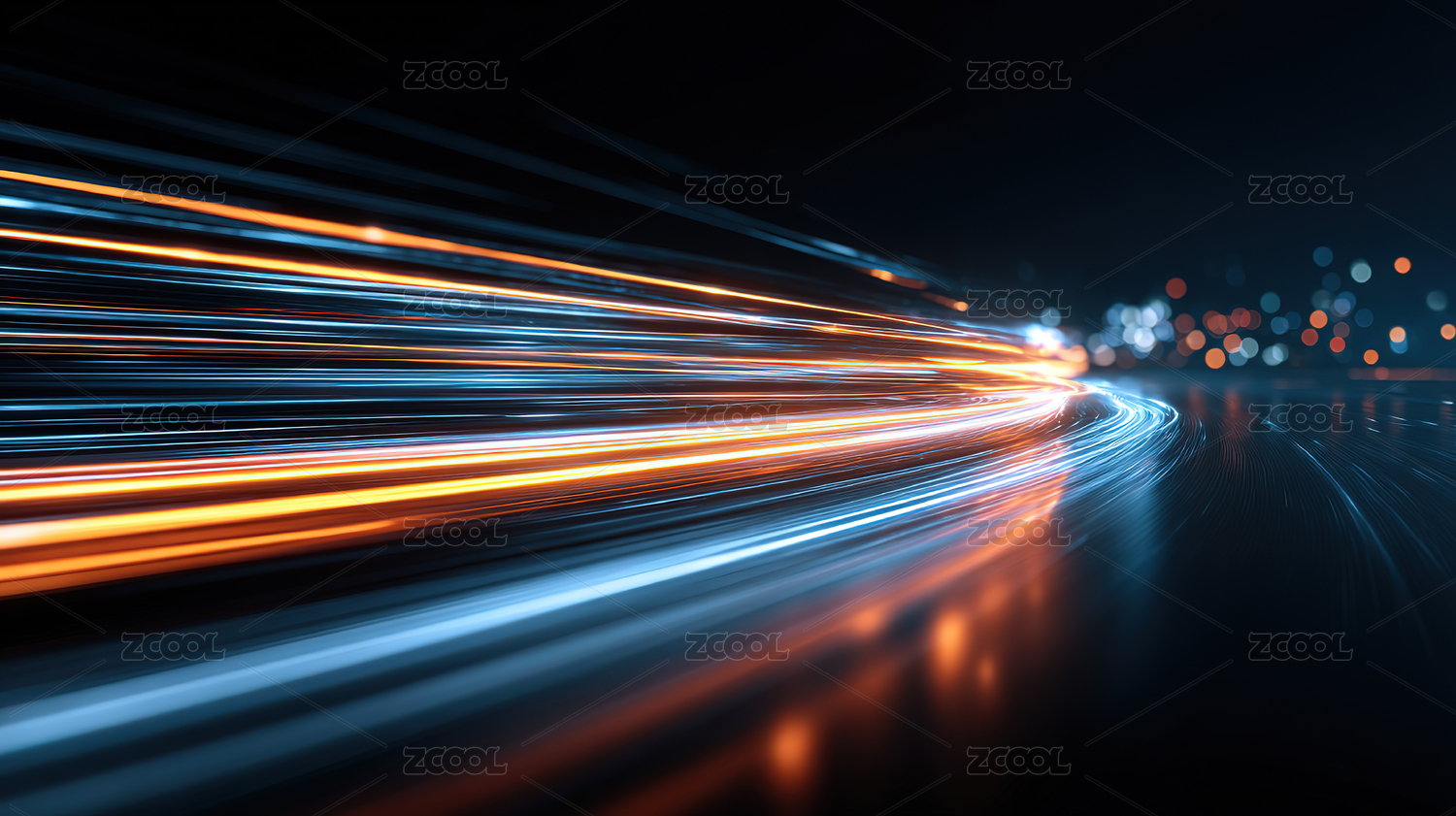 蓝橙光束飞驰城市夜景