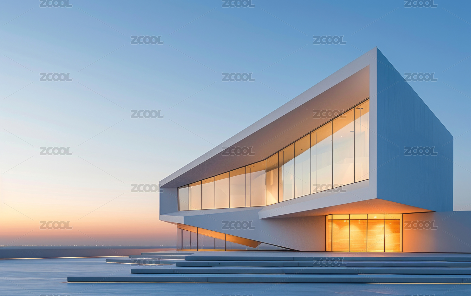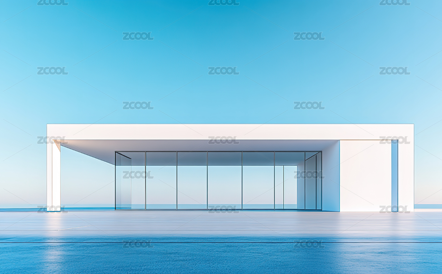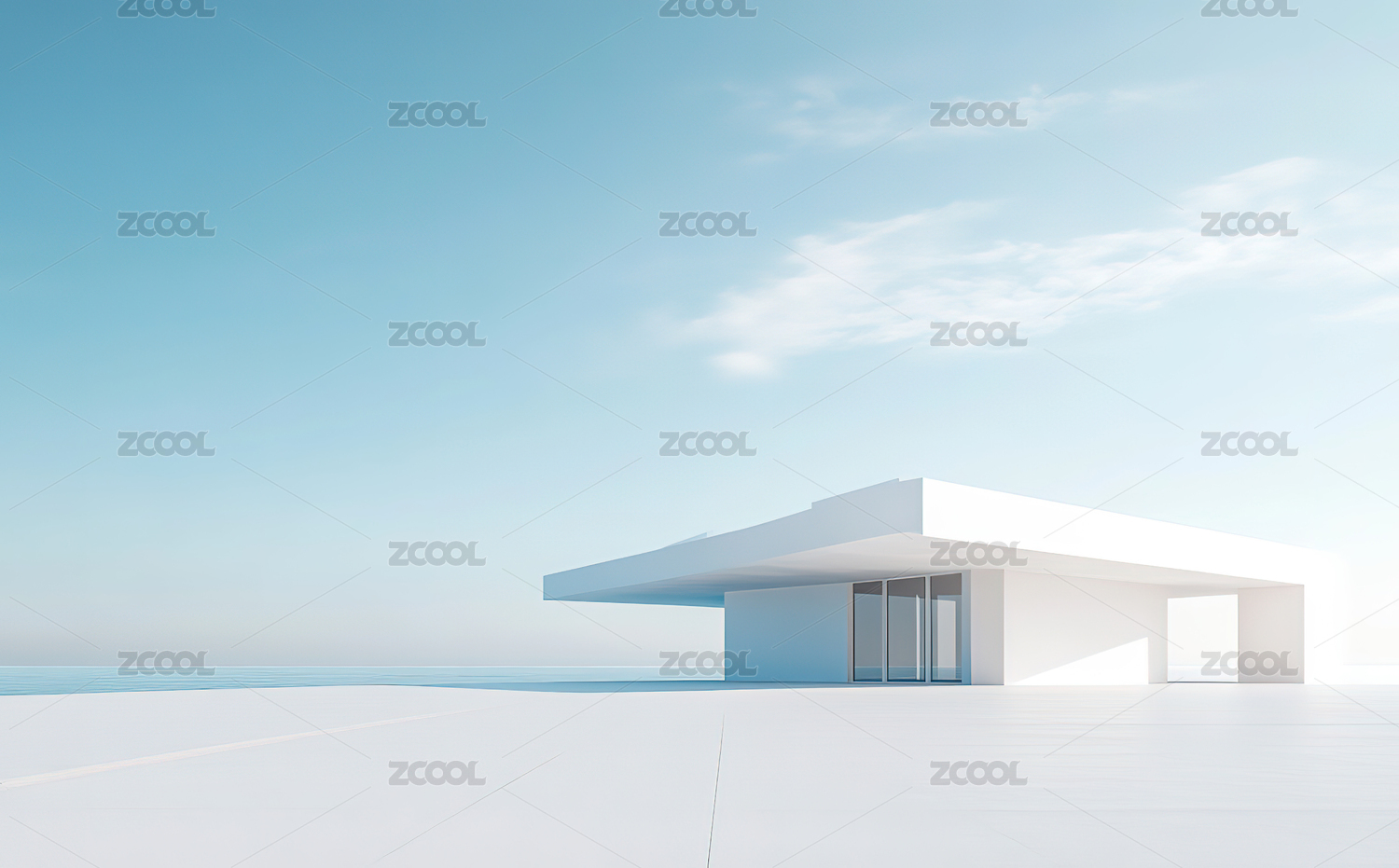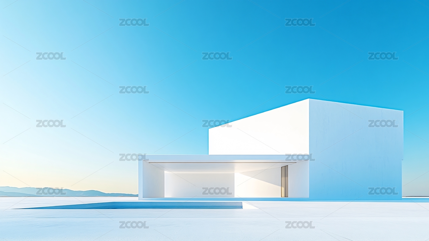 现代简约建筑在蓝天下的静谧景象