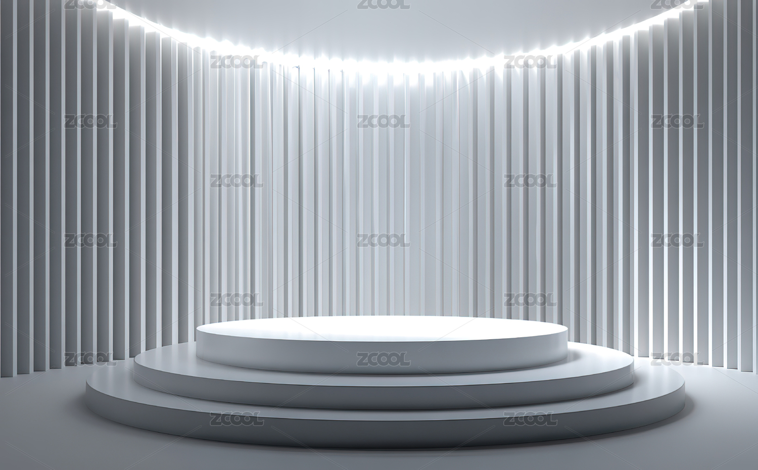 简约蓝色条纹背景下的圆形讲台