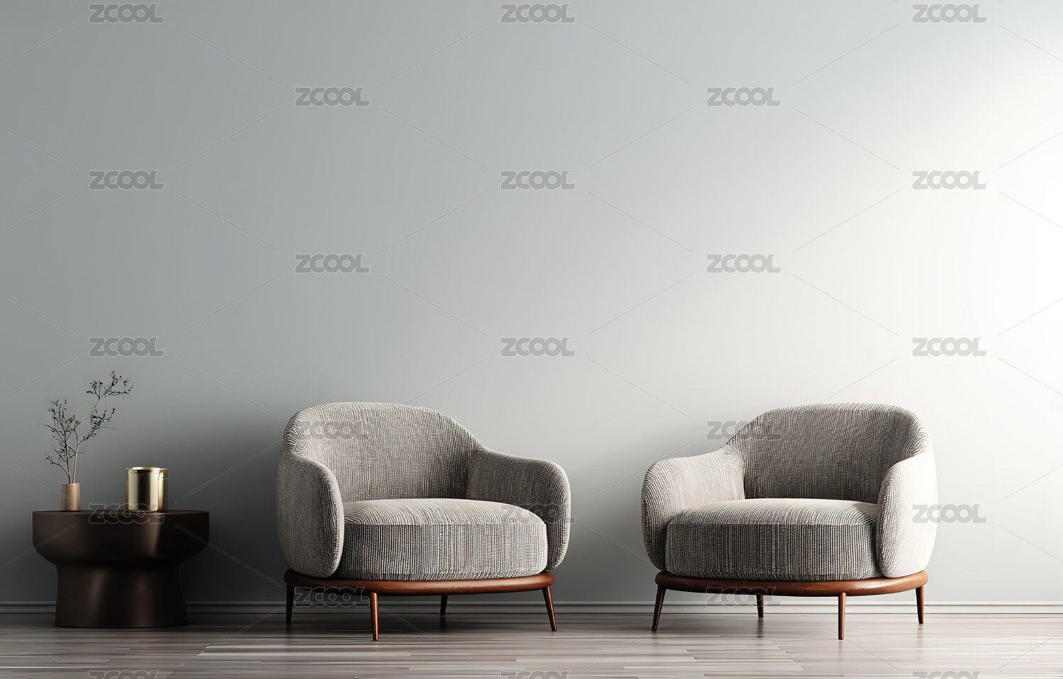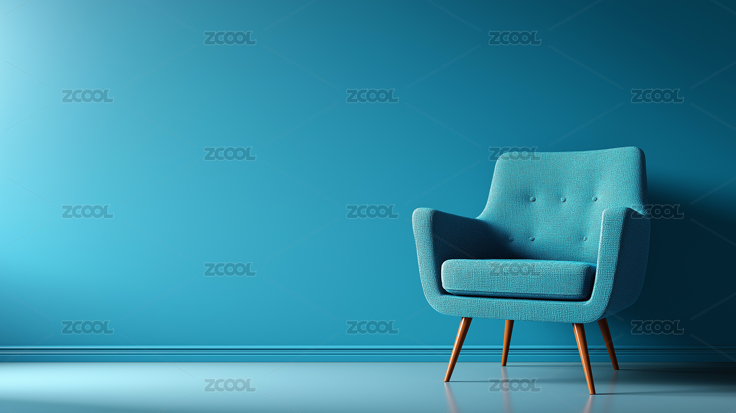 蓝墙浅蓝地面配右侧简约单人沙发椅