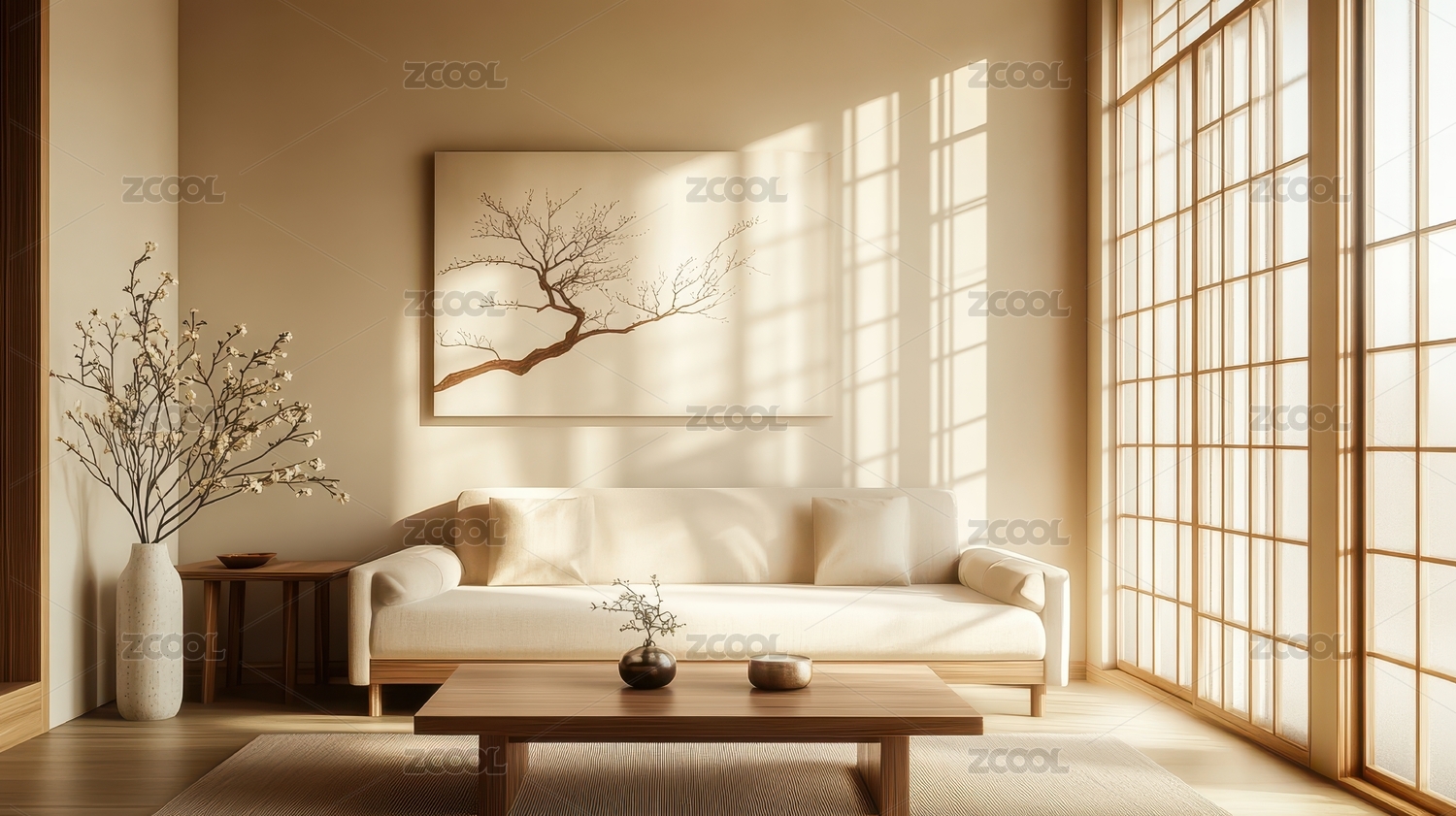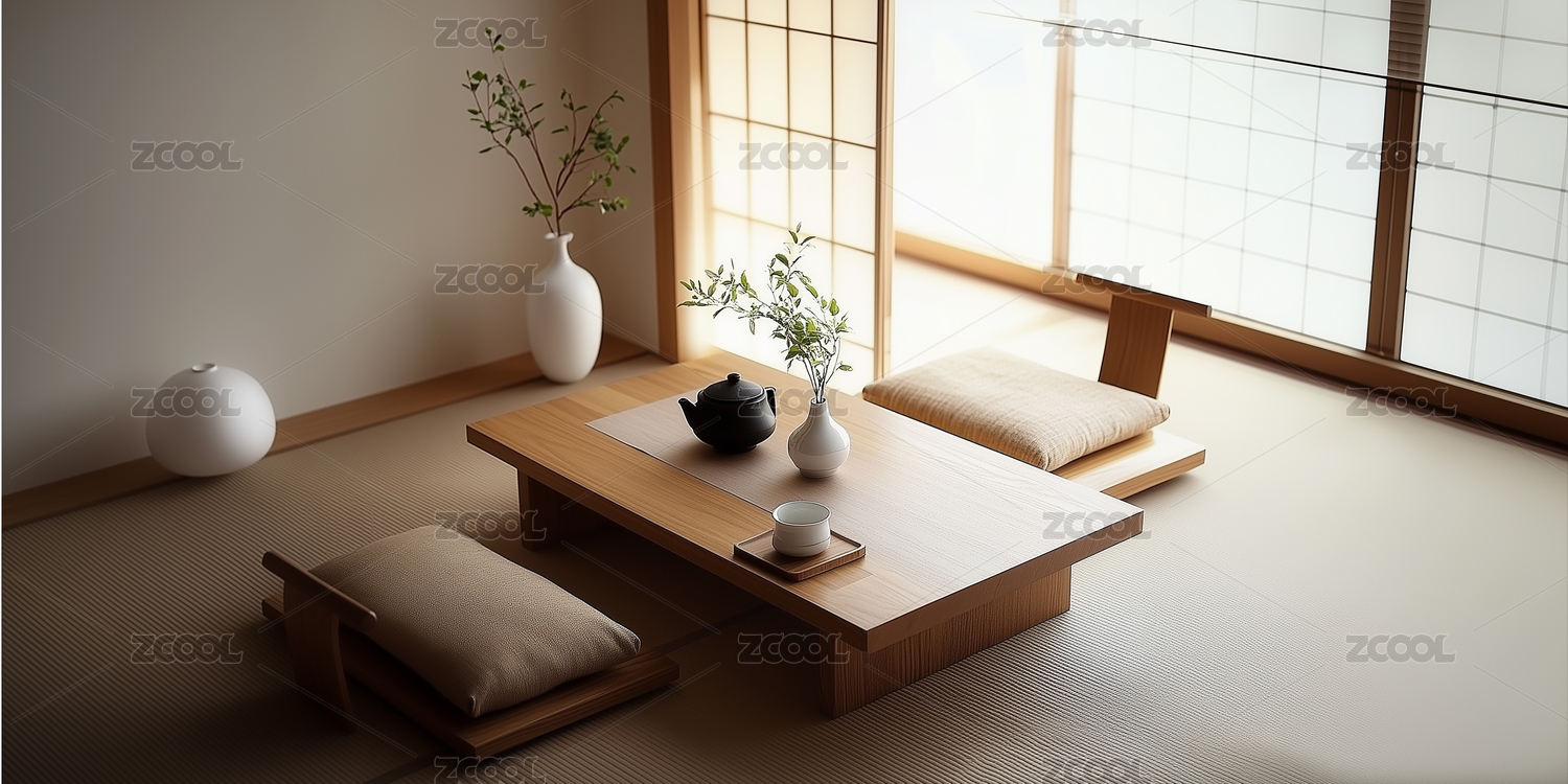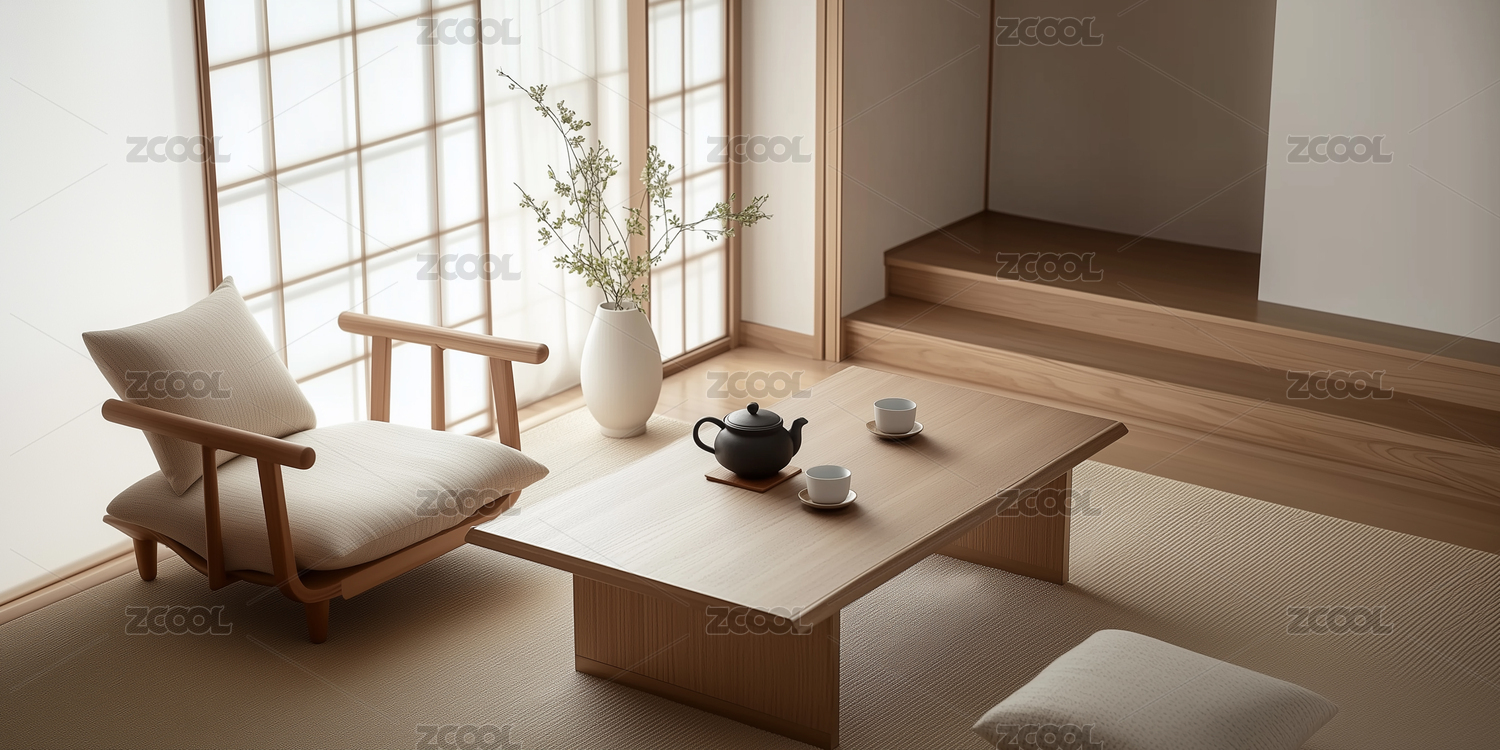 中式装修,软垫,极简装修,日式装修,日式装潢,米白色,栏杆,木质地板,白色,木色