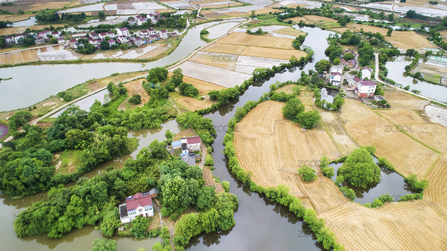 航拍中国安徽省宣城市郎溪县西郊田园秋色