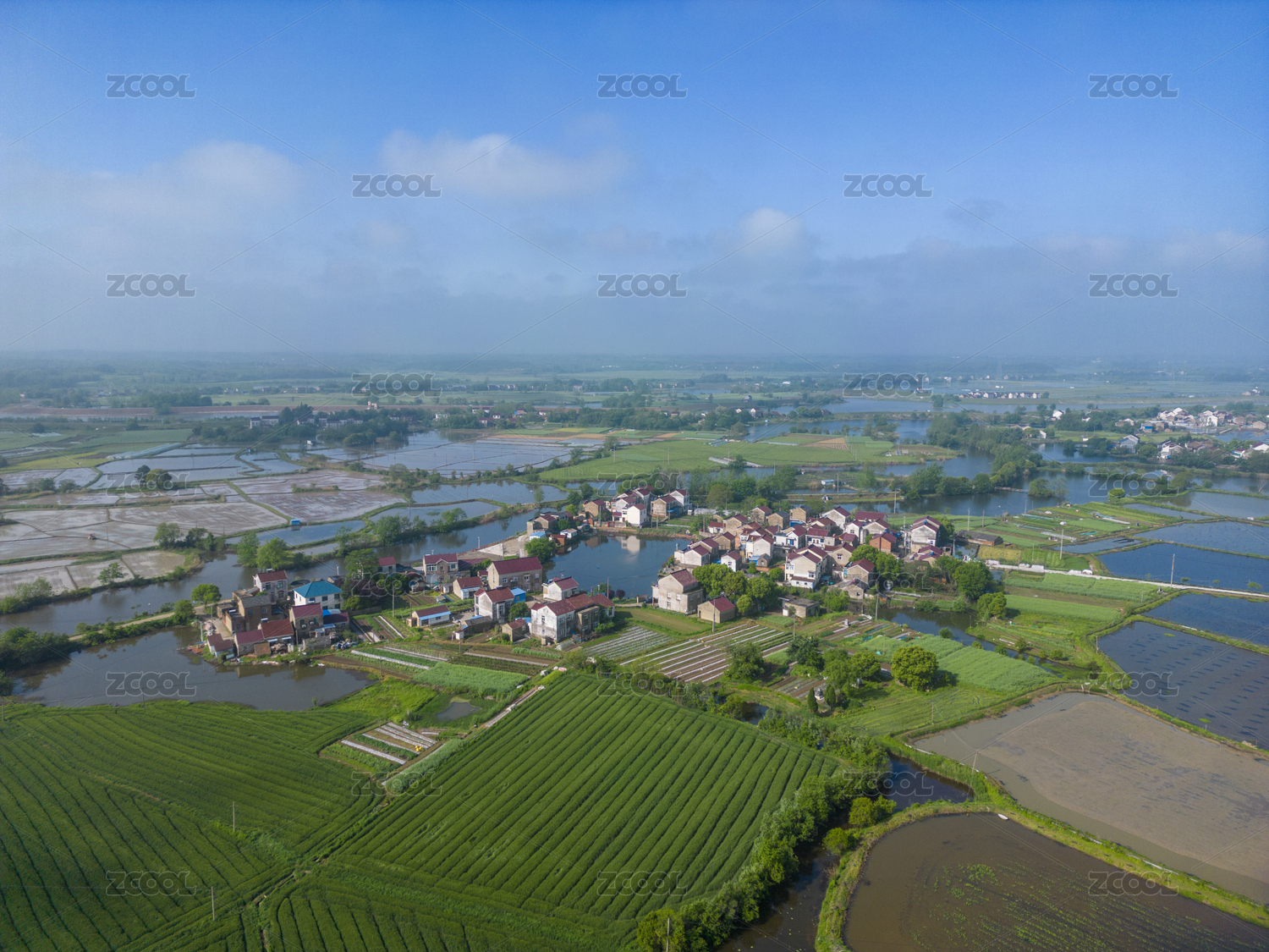 航拍中国安徽省宣城市雨后夏日乡村田园风光