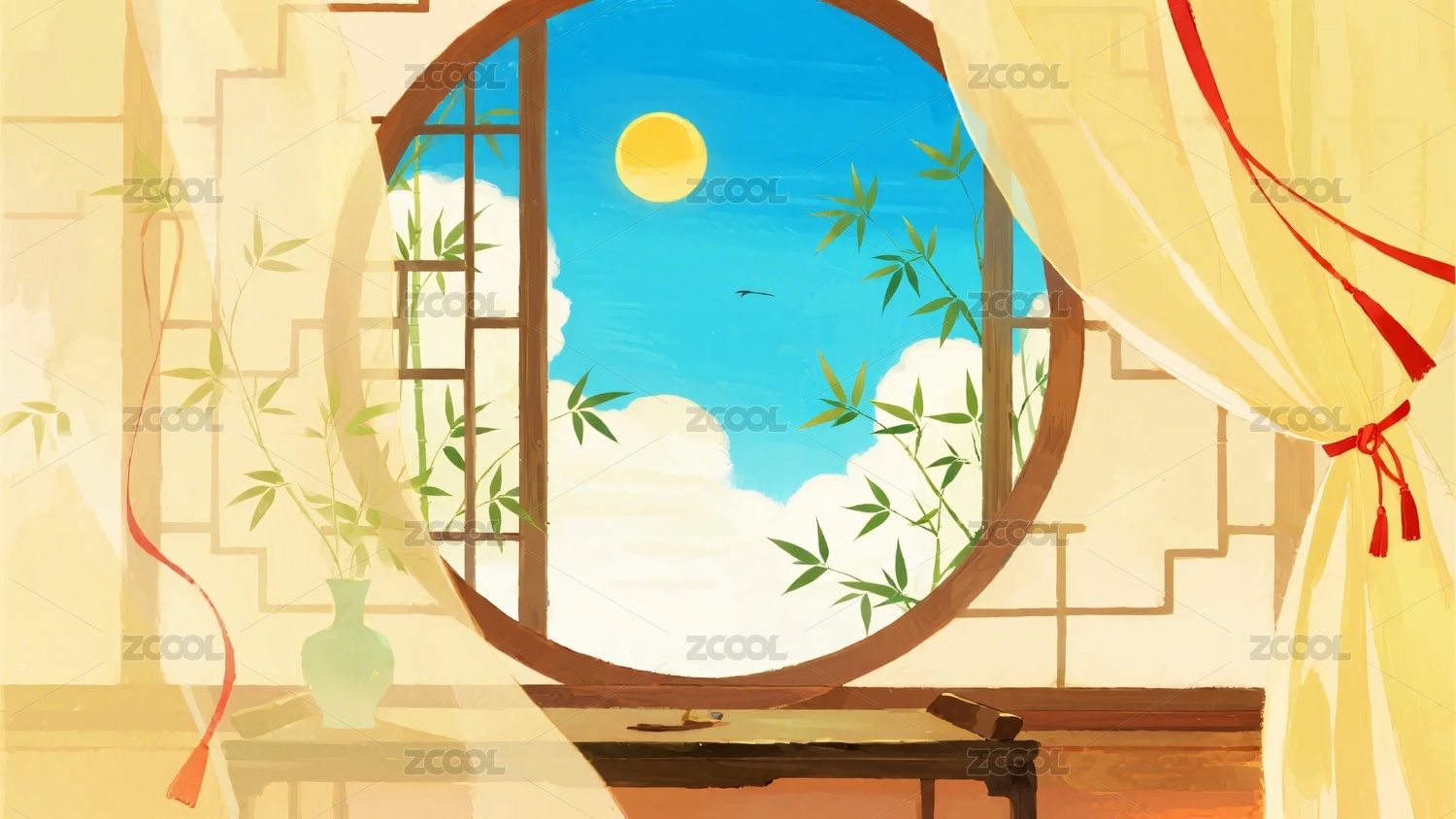 古风窗边美景插画