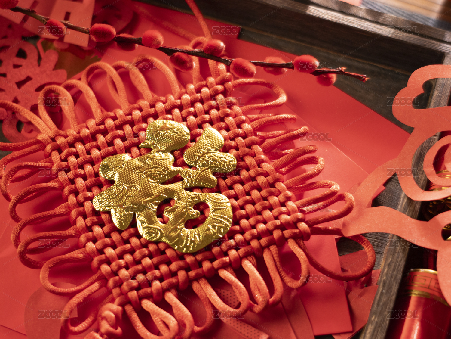 中国结 红包 灯笼 鞭炮 桃花 春节素材