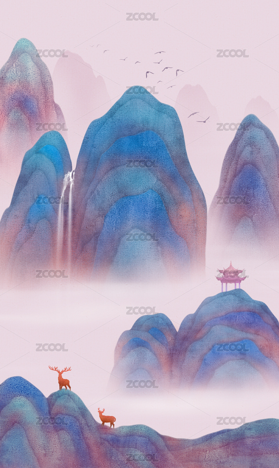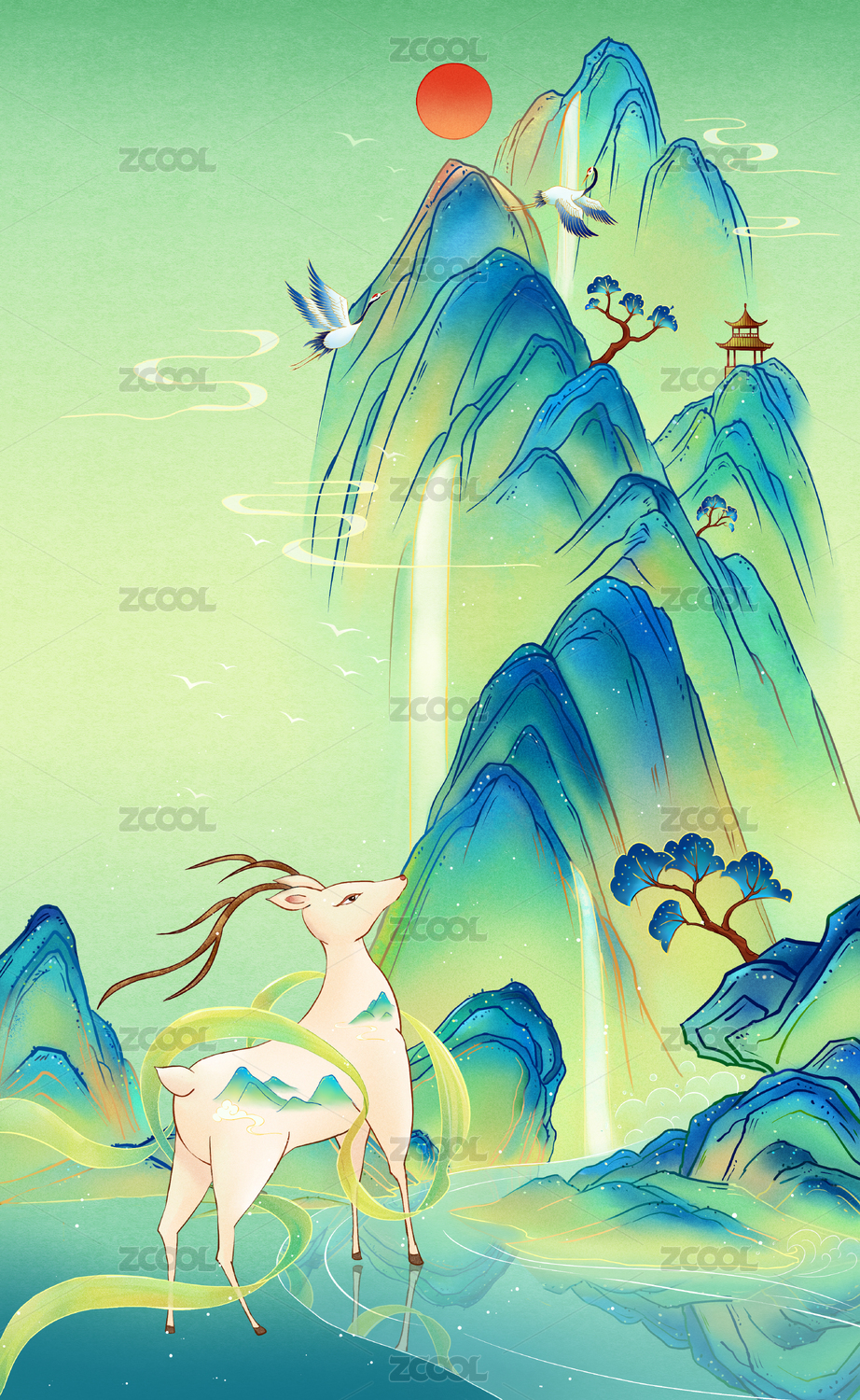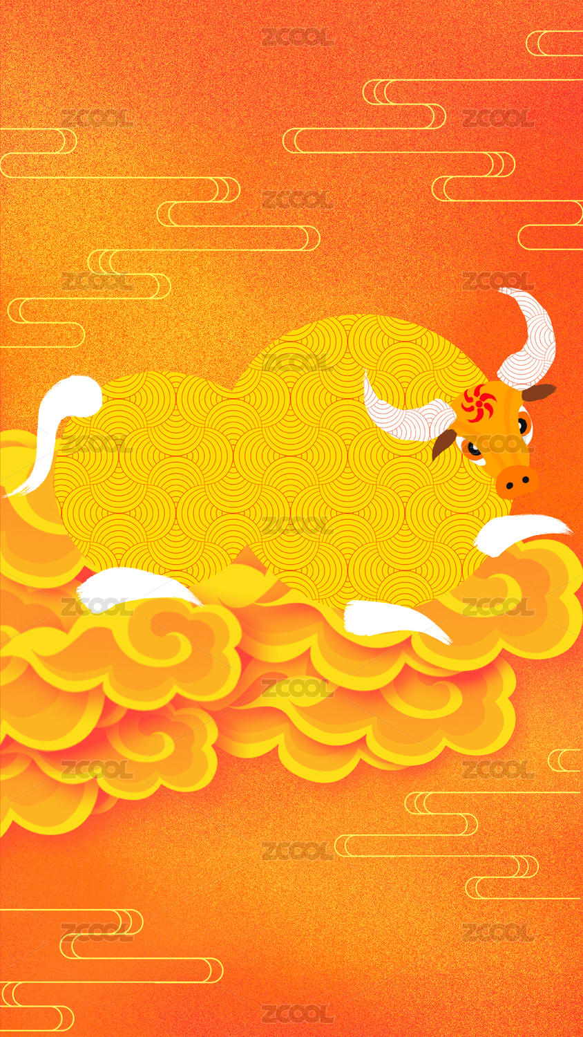 牛,金牛,牛年,春节,云,祥云,金色祥云,山,青山,千里江山