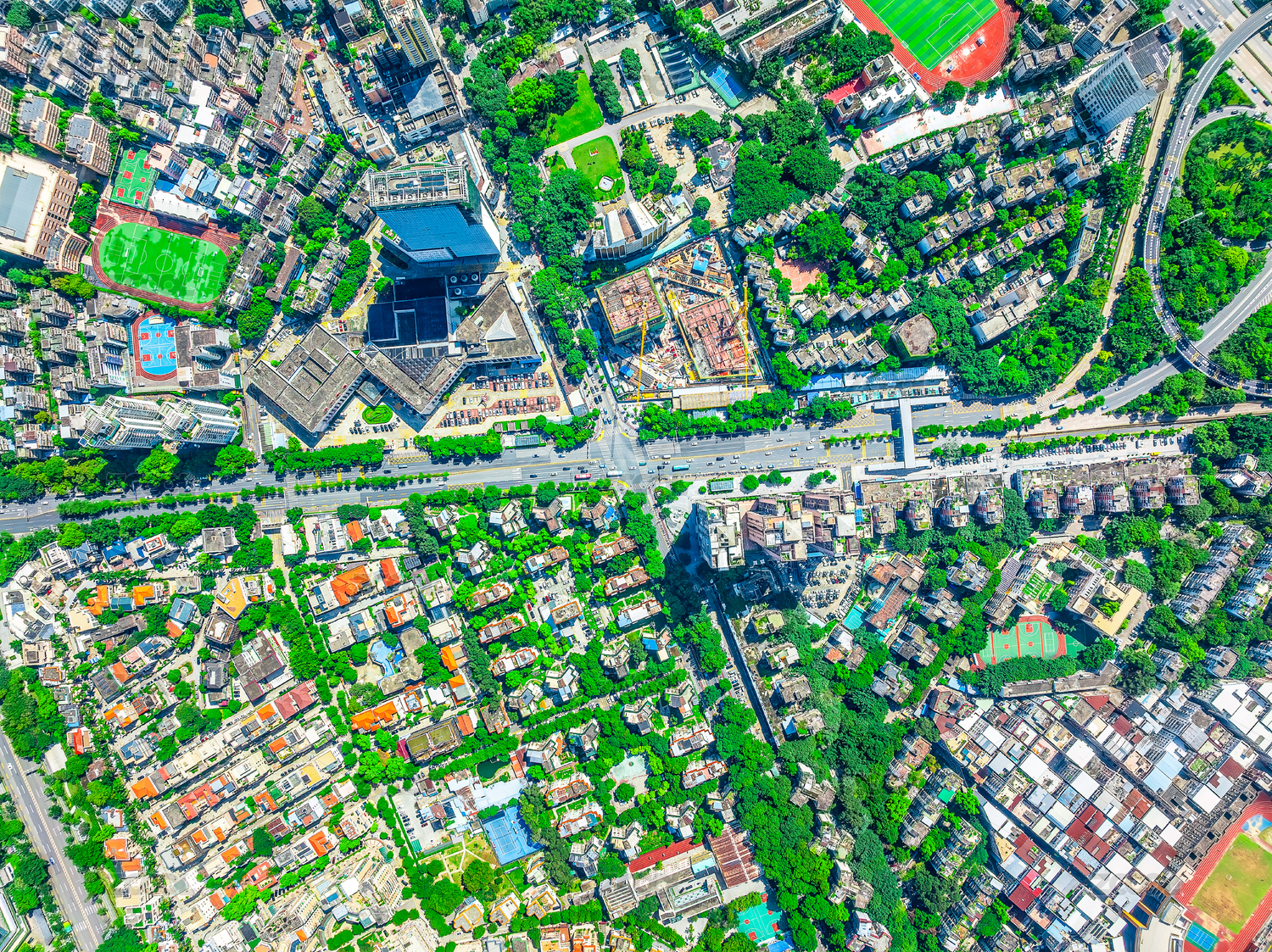 航拍重庆南岸区茶园丁香路与桂雨路十字路口