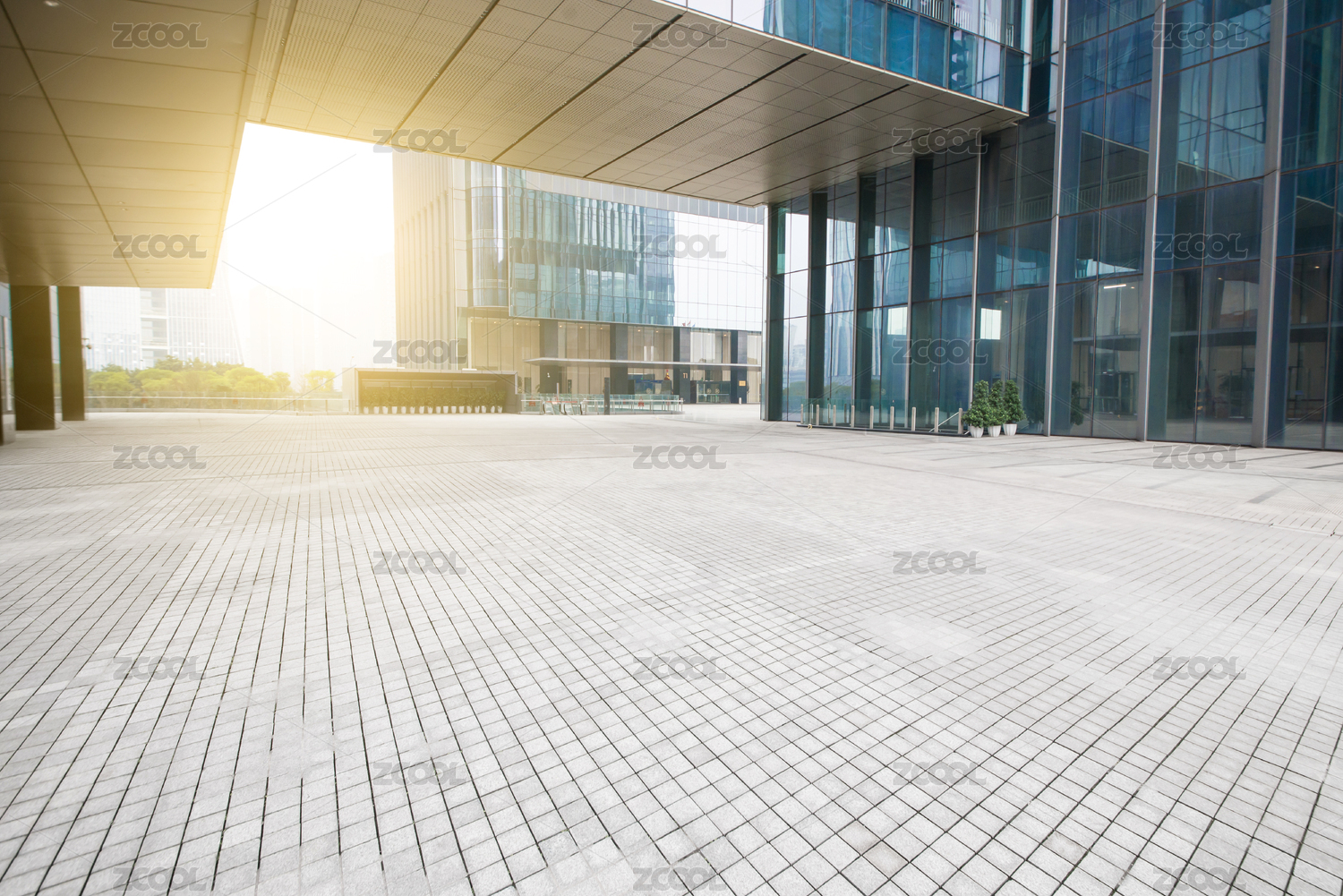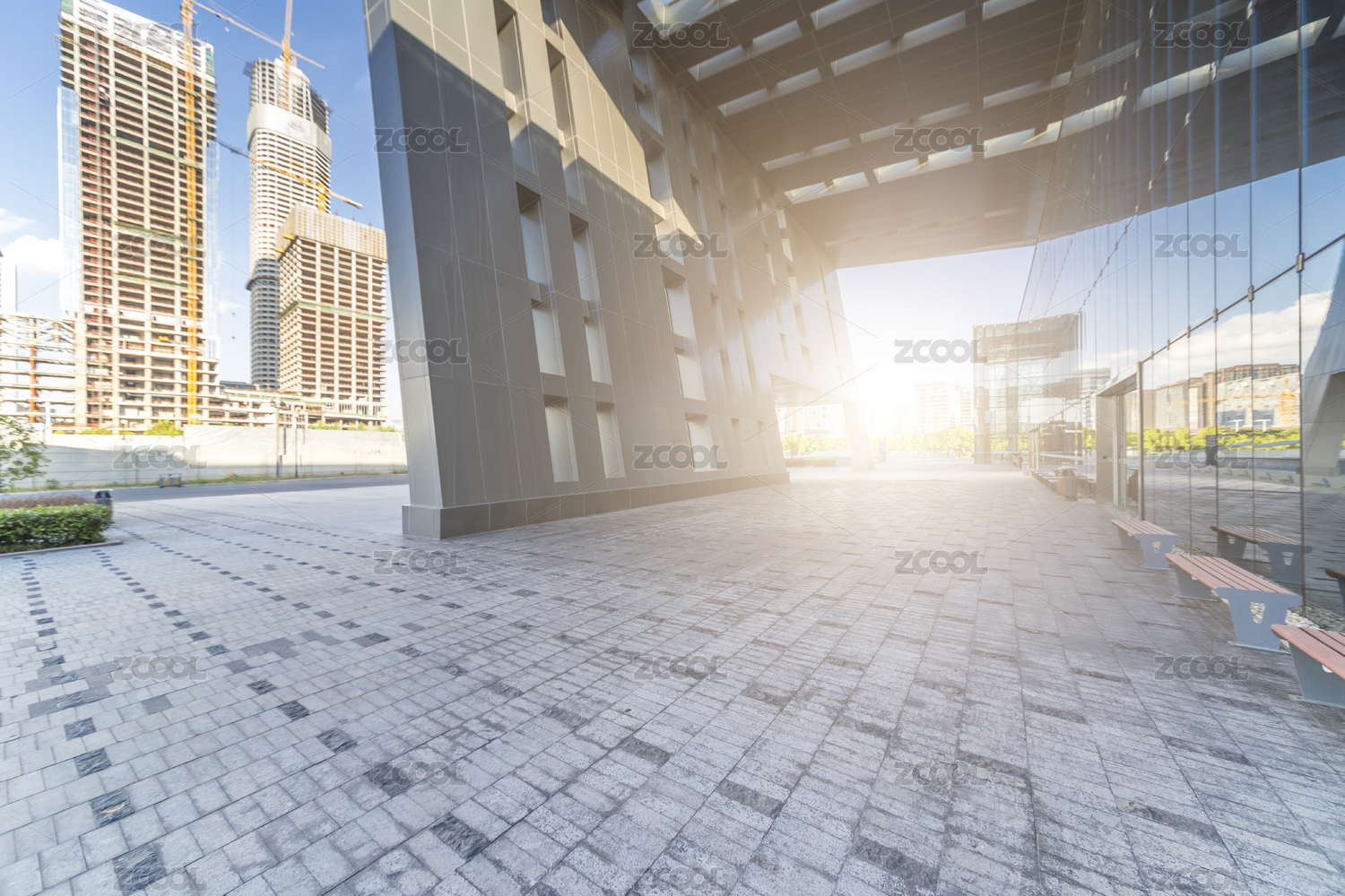 现代城市商务区砖地广场背景图