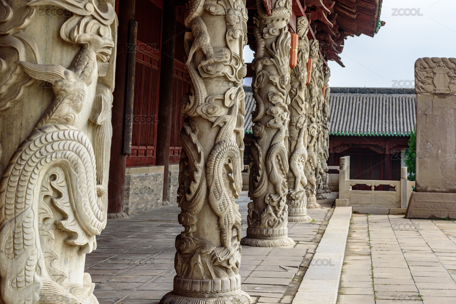 冬季的辽宁沈阳北陵公园清昭陵隆恩殿狮柱石雕