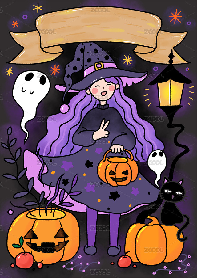 小魔女之万圣节可爱风插画