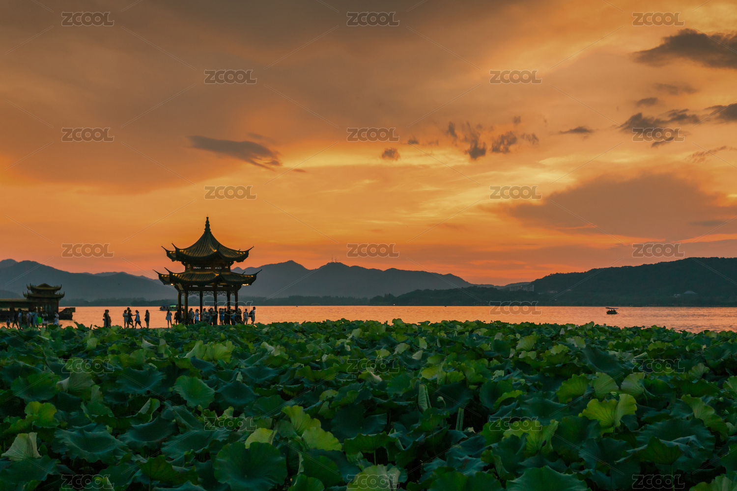 色彩,风景,日落,慢门,集贤亭,荷花,湖泊,西湖,杭州,旅行