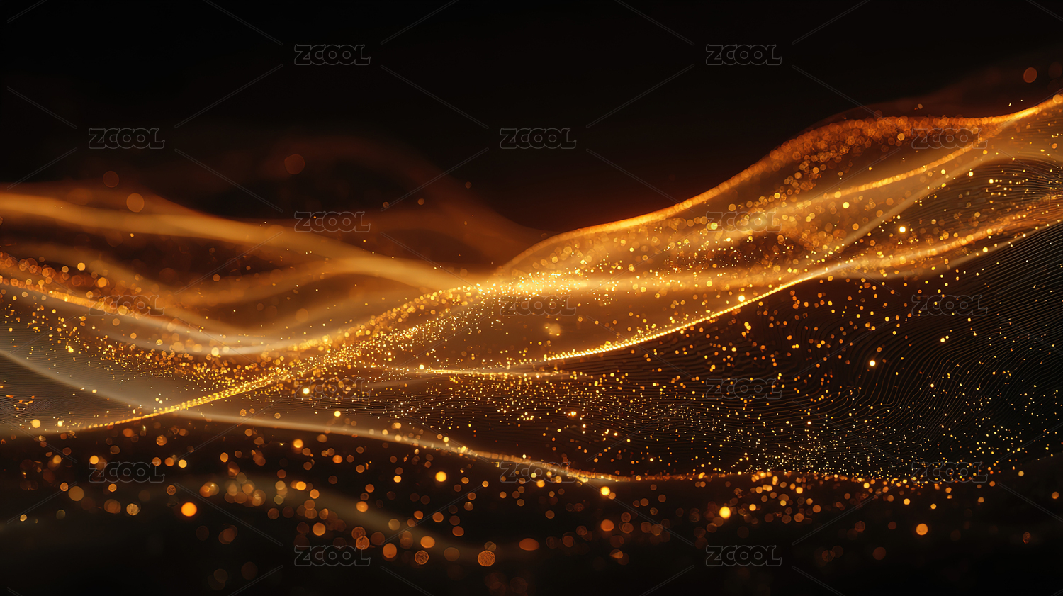 金色,曲线,波浪,科技,线条,粒子,发光,年会,抽象