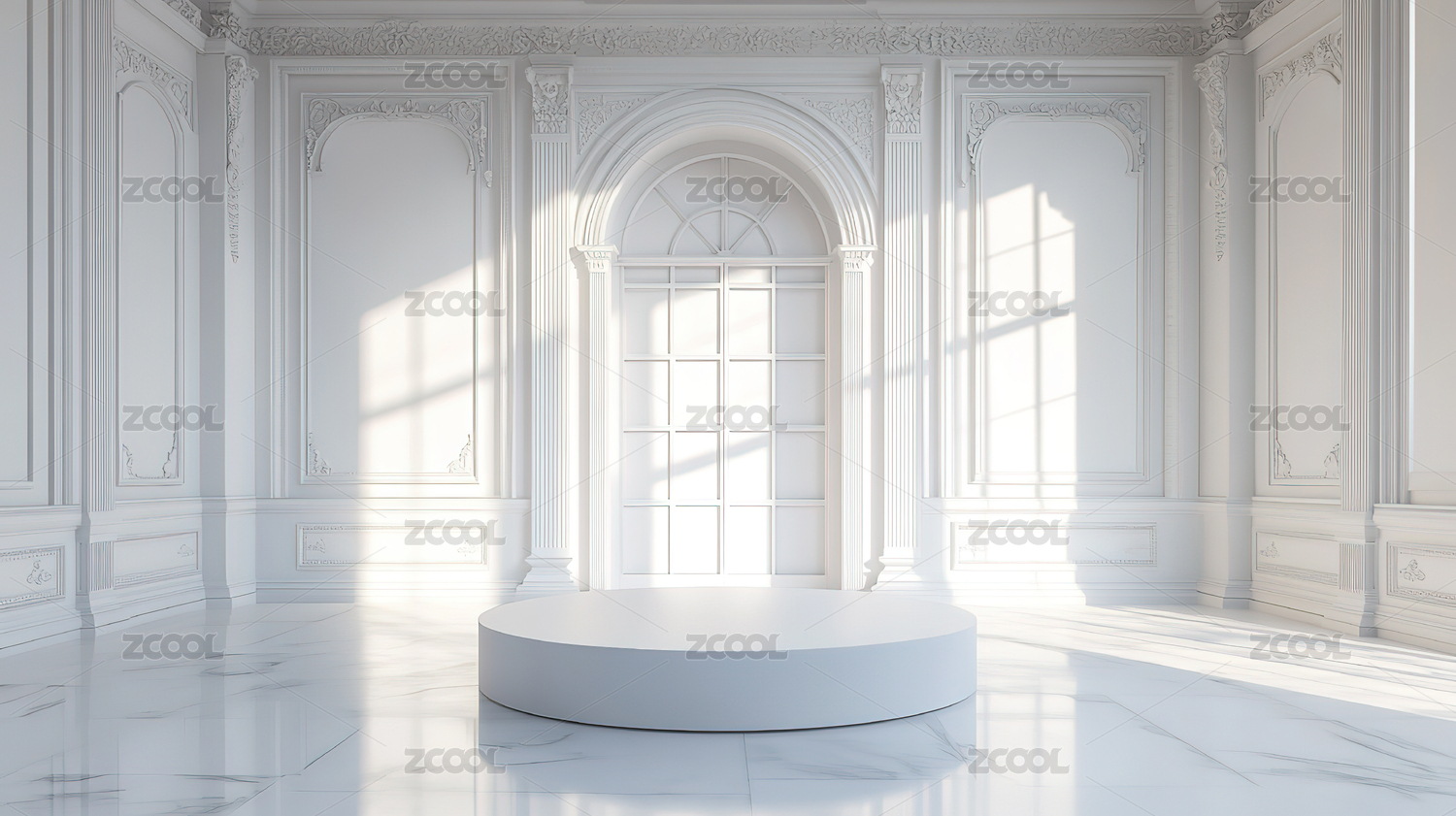 中式,古典,舞台,背景,圆形,装饰,蓝色,黄色,花瓶,建筑