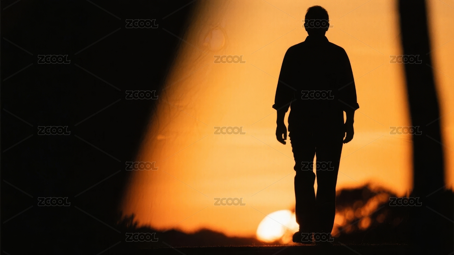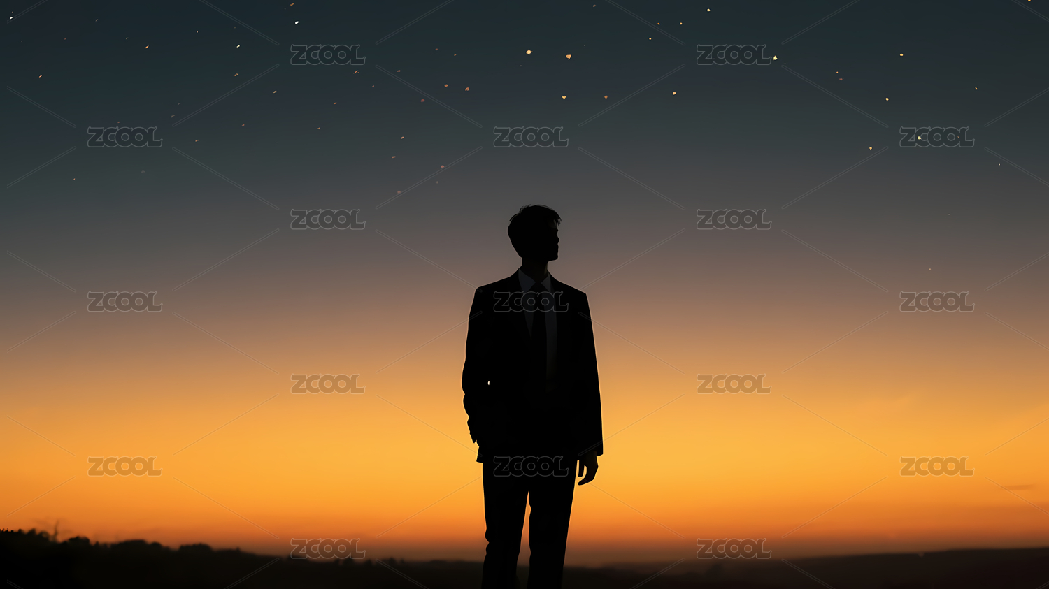 夕阳,火烧云,剪影,男人,游客,站立,侧身,抬头
