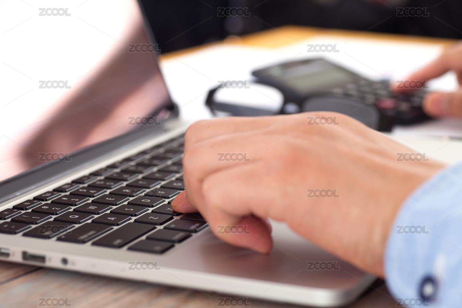 同时使用电脑和计算器的工作者