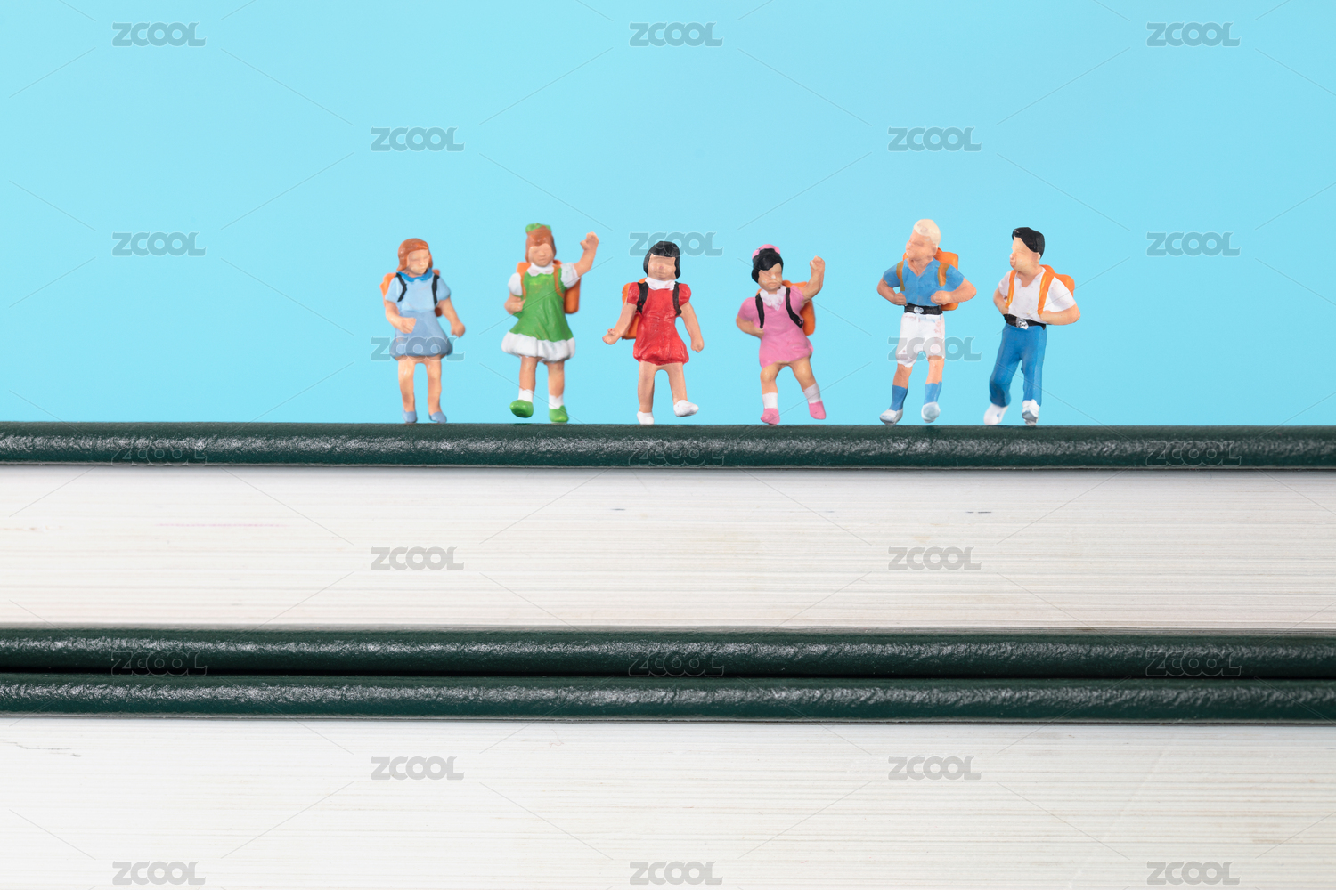 书本上一排微缩的小学生人偶模型