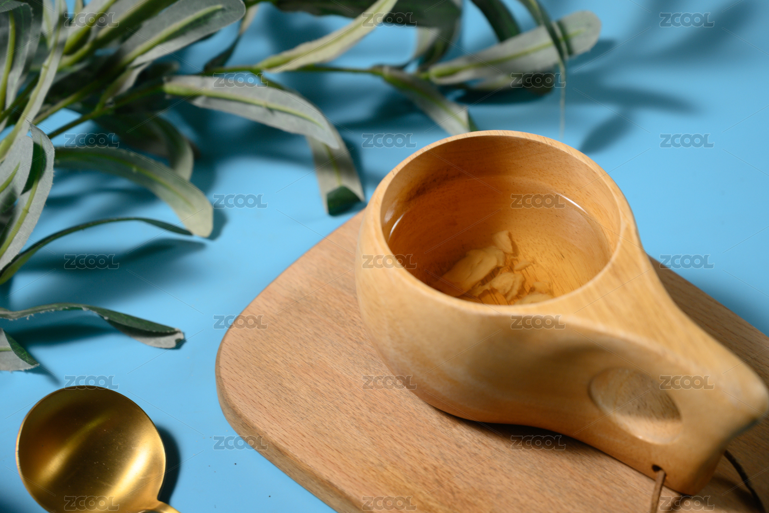 桌面上的杯子里的甘甜可口的赶黄草茶