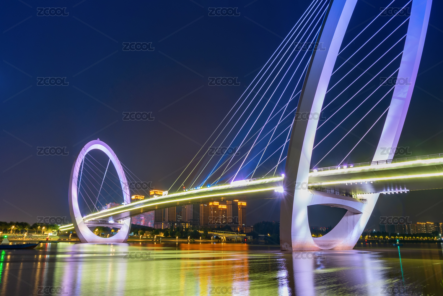 广州南沙蕉门公园蕉门河桥梁与城市夜景灯光