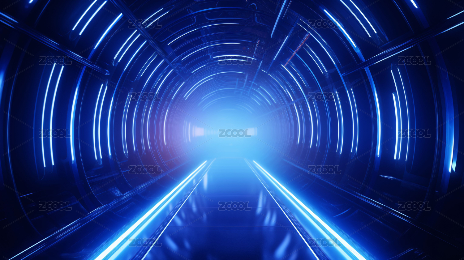 3D渲染科幻延伸蓝色未来科技感空间场景